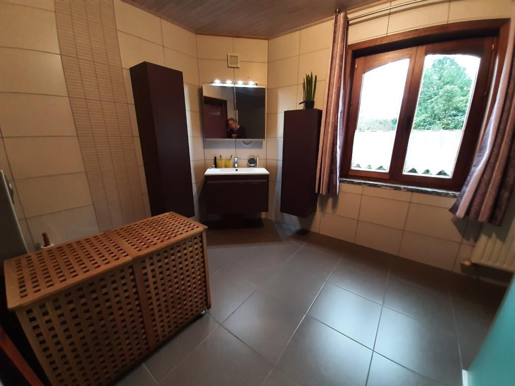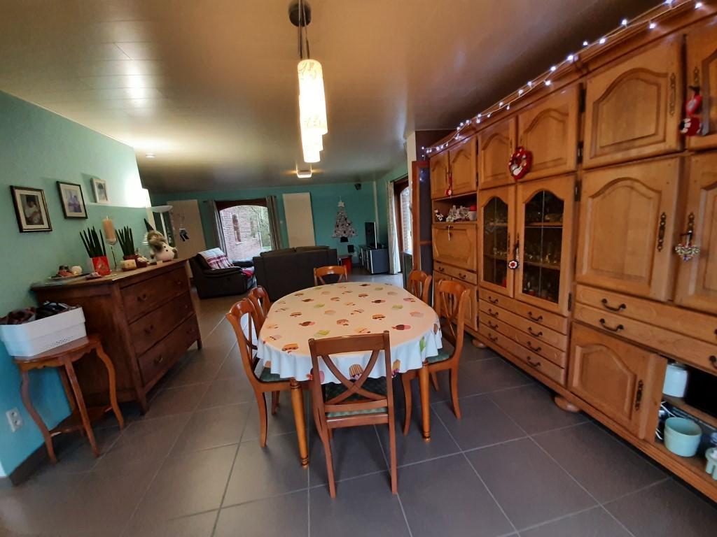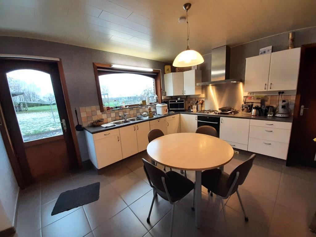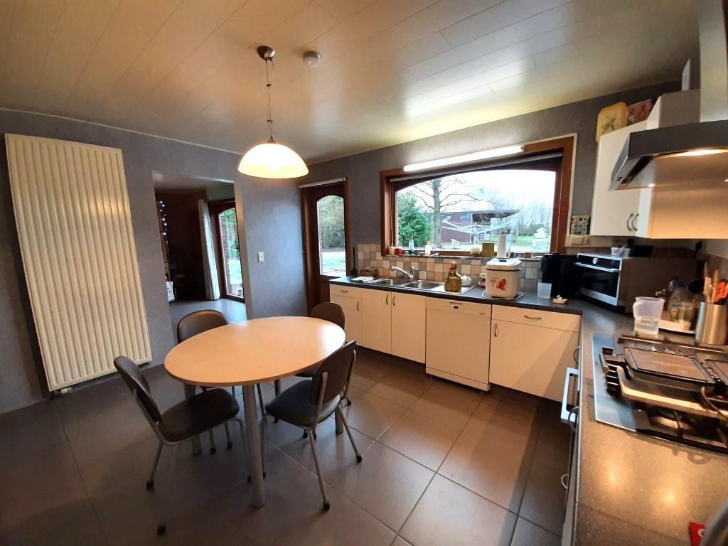 *au RDC: un hall avec WC et lavabo, un très spacieux salon-salle-à-manger, une cuisine équipée (5 becs au gaz, four électrique, lave-vaisselle, double évier, hotte, meubles), 4 chambres et une immense salle de bain (douche à l'italienne, WC et lavabo).