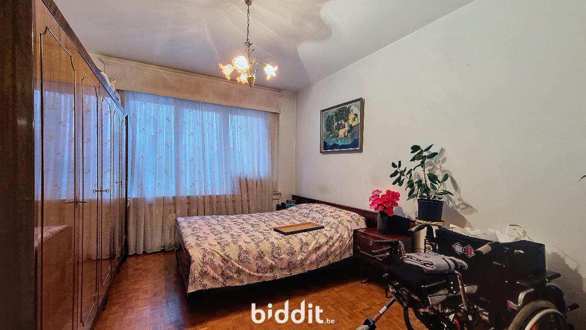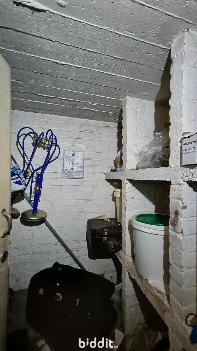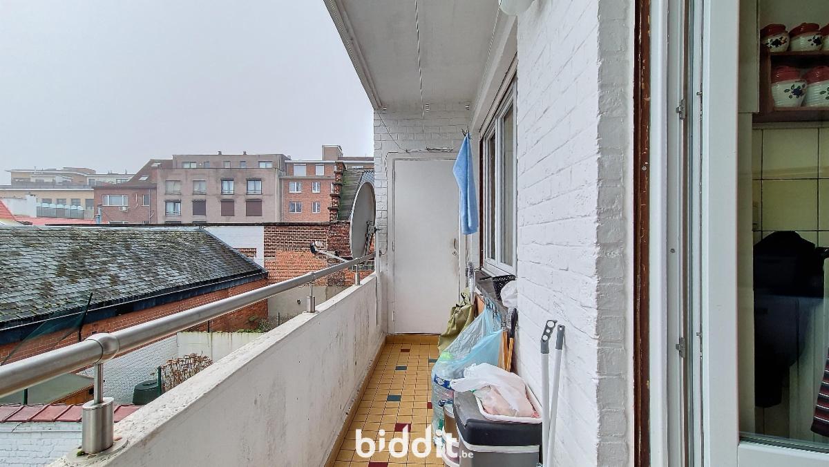 Comrp. : hall d’entrée, vestiaire, wc séparé, sdb, séjour, cuisine, chambre et 2 débarras extérieurs, cave n° 7 au ss-sol et garage n° 05 au rez-de-ch. R.c.n.i. 934€ (app.), 111€ (garage). Loués. Zone mixte, le long d’un espace structurant. PEB: D/180. Contr. électr. non conforme. Visites : mardis 10, 17 et 24 février 2026 de 12h30-14h30 et samedis 14,21 et 28 février 2026 de 16h30-18h30.
