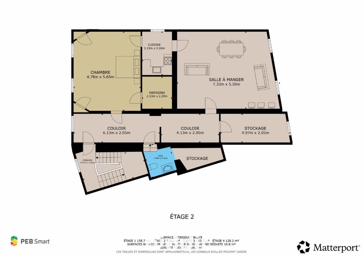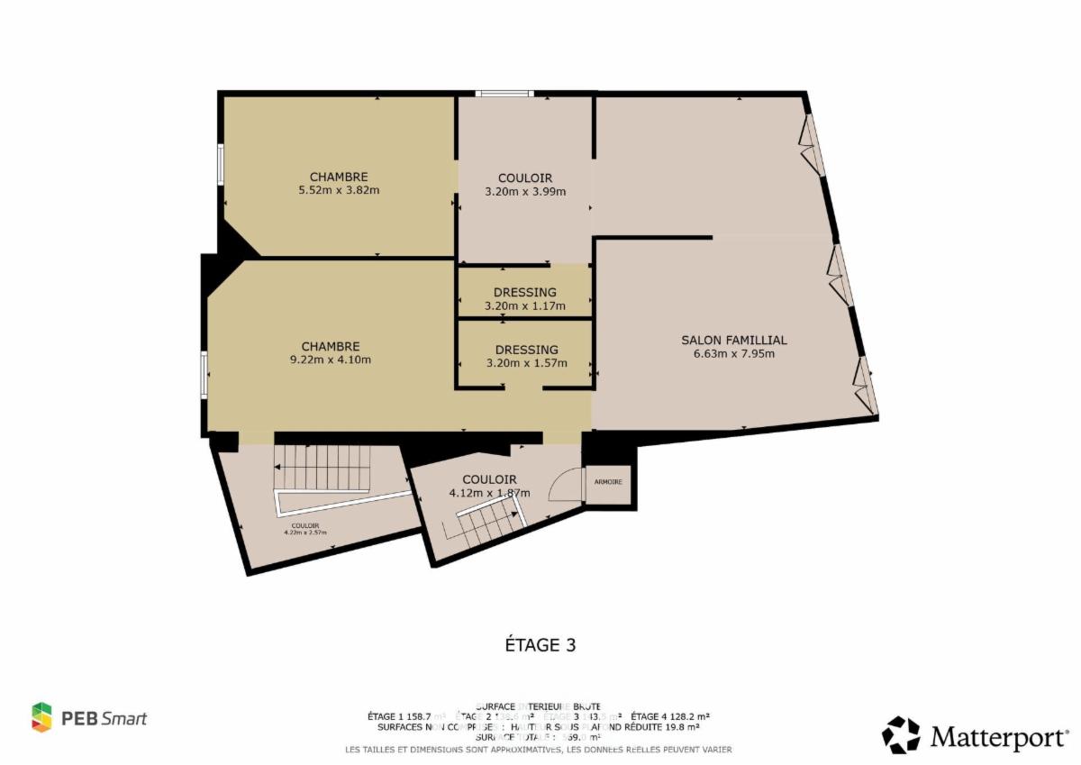 2ième étage : Séjour, 2 chambres.