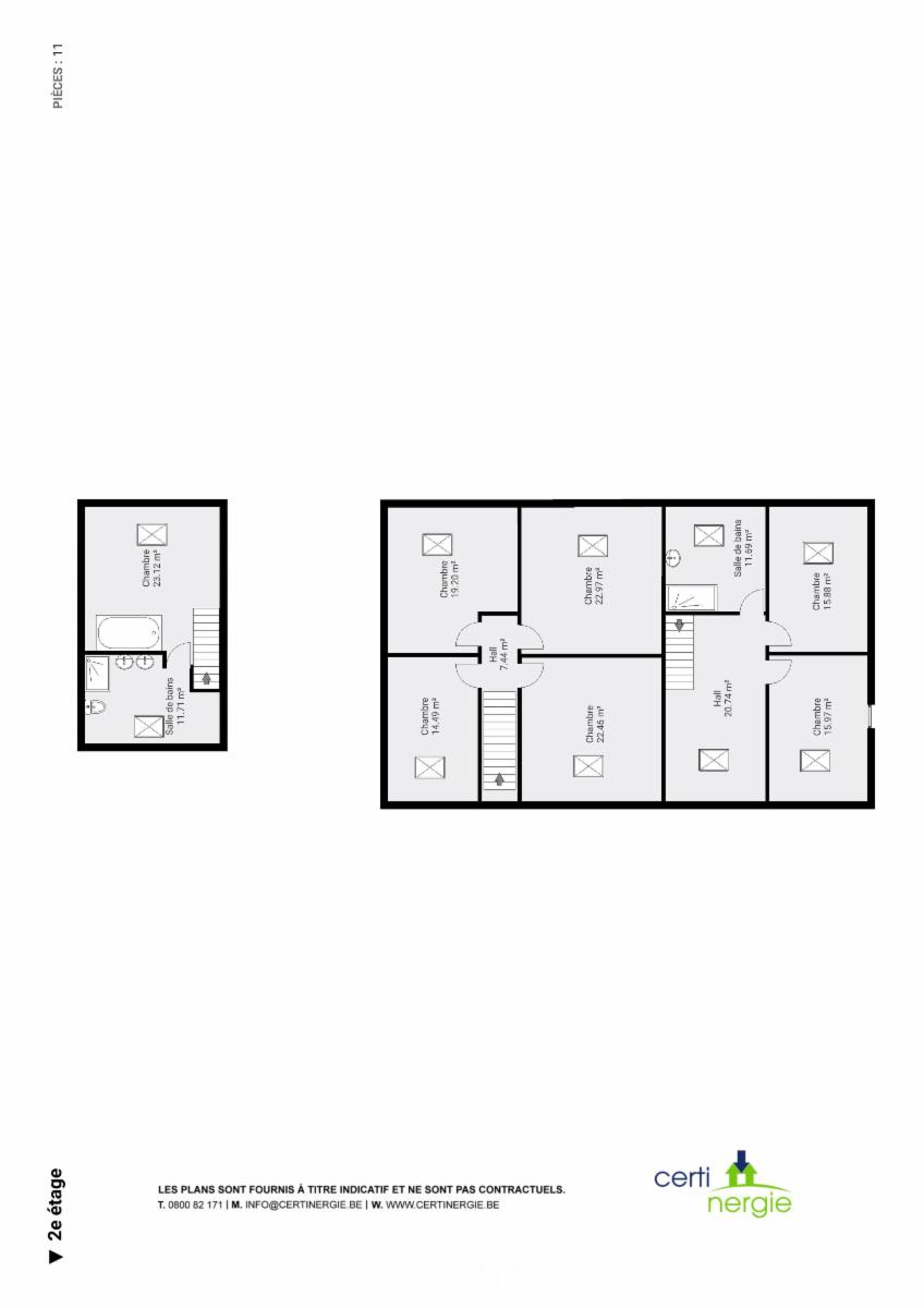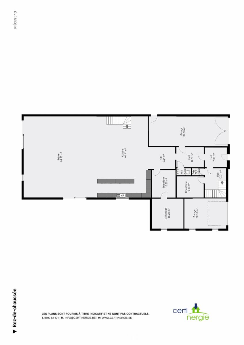 compr. hall d’entrée, wc, buanderie - 1er ét. : séjour - 2e ét. : sdb et 2 ch.