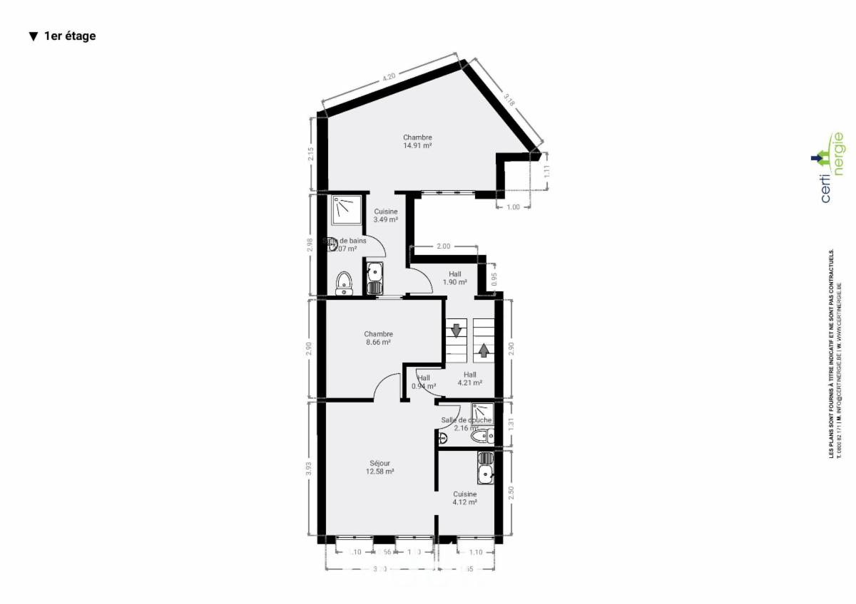 Sise à front de la rue Goossens 6 pour une superficie de 75ca. Composé de quatre niveaux comprenant respectivement : - Rdc. : hall, 2 chambres, espace de jonction, 2 cuisines, salle de douche avec wc - 1e ét. : hall, 2 chambres, séjour, 2 cuisines, salle de douche avec wc – 2e ét. : hall, 2 chambres, cuisine, wc - 3e ét. : hall, 2 chambres, cuisine, wc - 4e ét. : chambre. R.c.n.i. 1.078€. Louée. Zone d’habitation, ZICHEE. PEB E/250 (rdc + 1e ét.) - G/627 (2e et 3e ét.). Contr. électr. non conforme. Visites àpd 15/11 au 29/11 incl. : samedis et mardis de 14-16h.