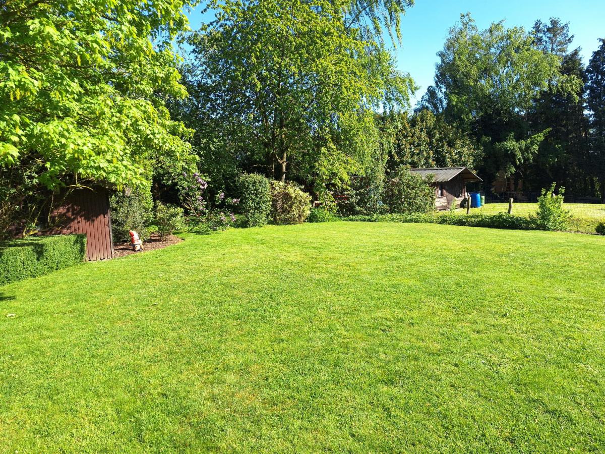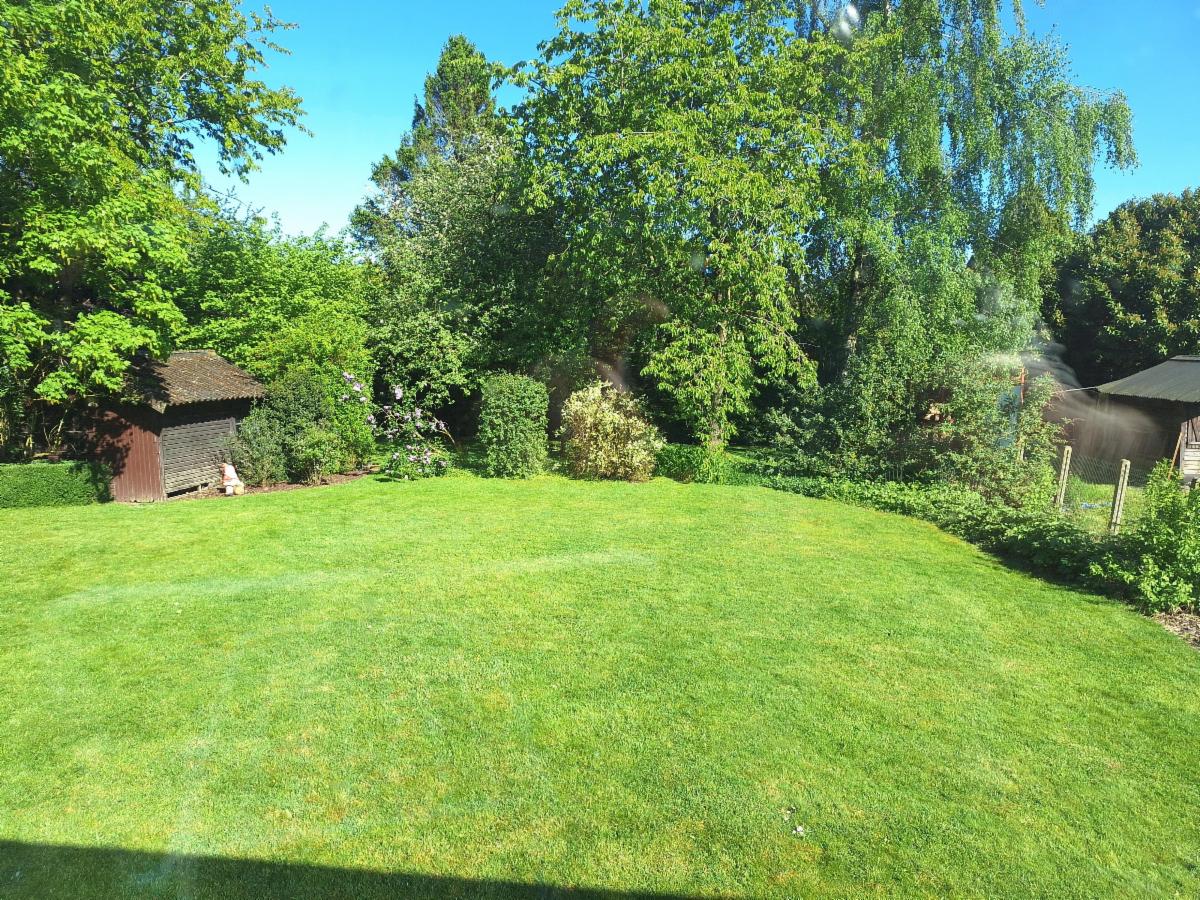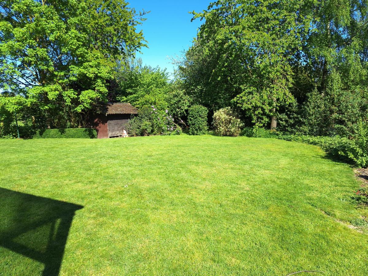 Jardin/extérieur : terrasse surélevée (à hauteur habitation), avec escalier pour accéder au jardin. L’accès à la citerne enterrée se trouve sur la terrasse, partie où il y a les escaliers ; beau et grand jardin d’agrément ; abri de jardin.
