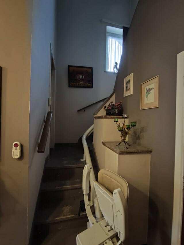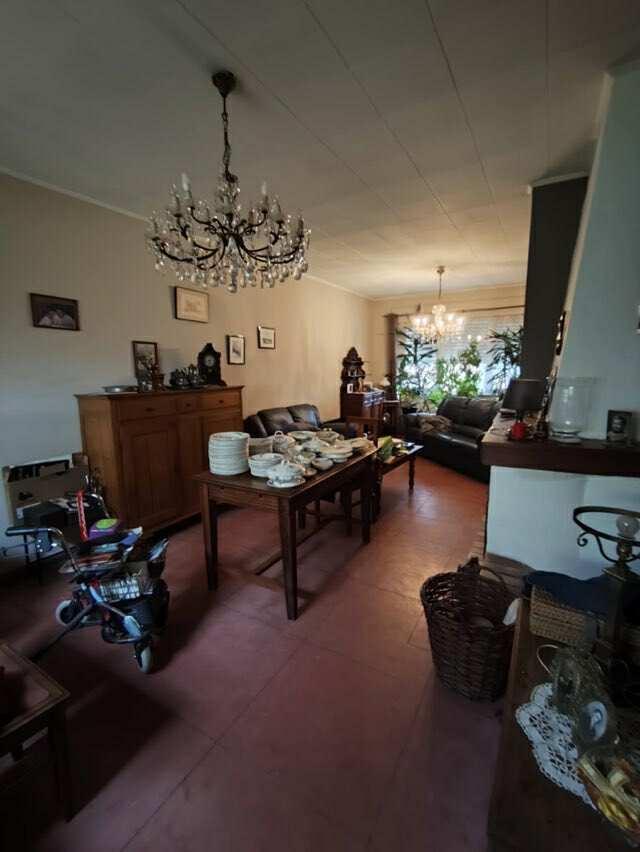 Le bien dispose d’un garage situé dans le fond du jardin, d’une citerne à eau de pluie, de caves (sous toute la surface), de châssis en PVC double vitrage avec volets électriques au rez et d’un chauffage central au mazout.