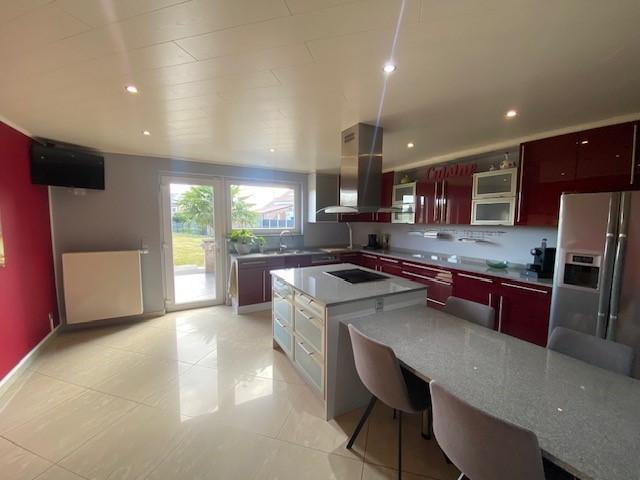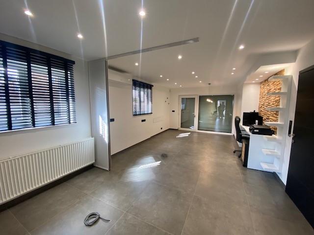 - Au rez-de-chaussée (+/- 138,5 m²) : vaste hall d’entrée (+/- 19 m²), living spacieux (+/- 52 m²), cuisine super équipée avec îlot central (+/- 23 m²) + partie professionnelle avec 2 pièces de +/- 30 m² et de +/-14,5 m².