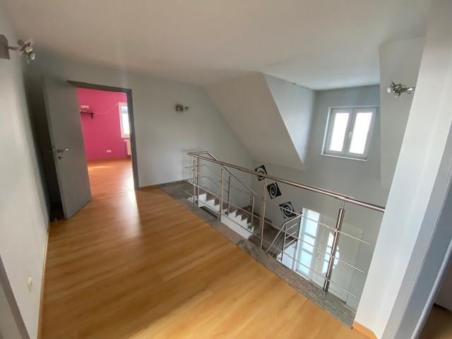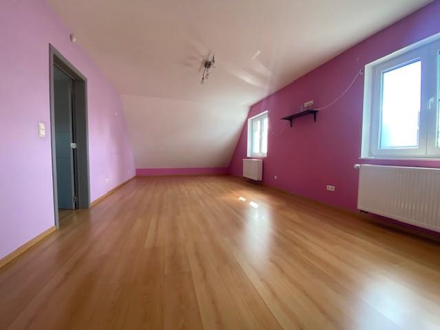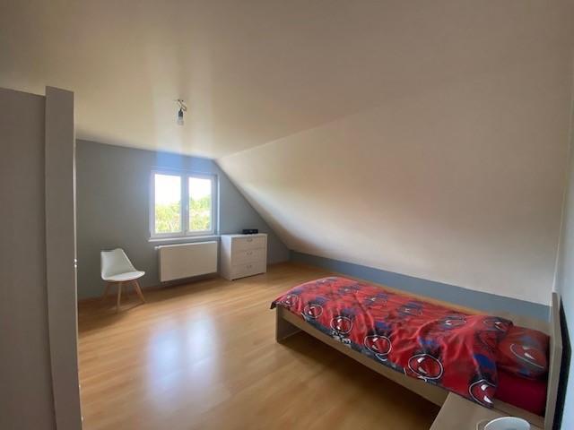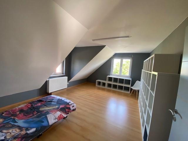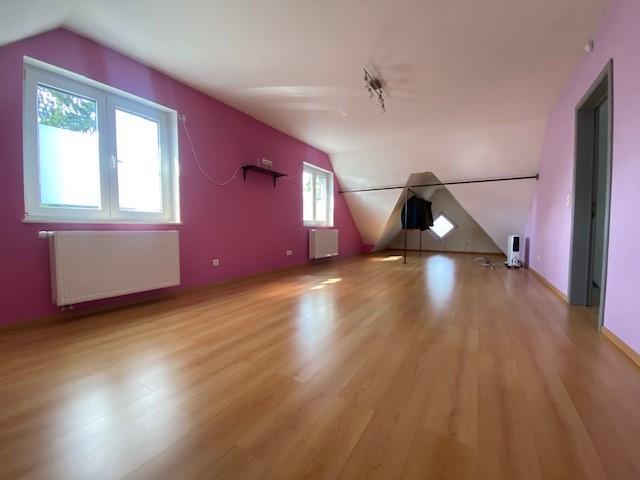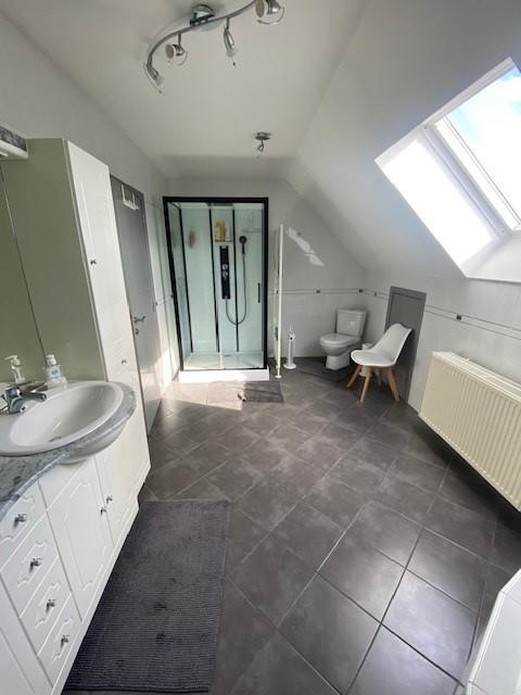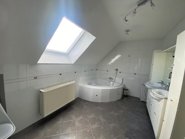 - Au 1er étage (+/-120 m²) : 3 chambres + une salle de bain (avec baignoire en coin + douche).