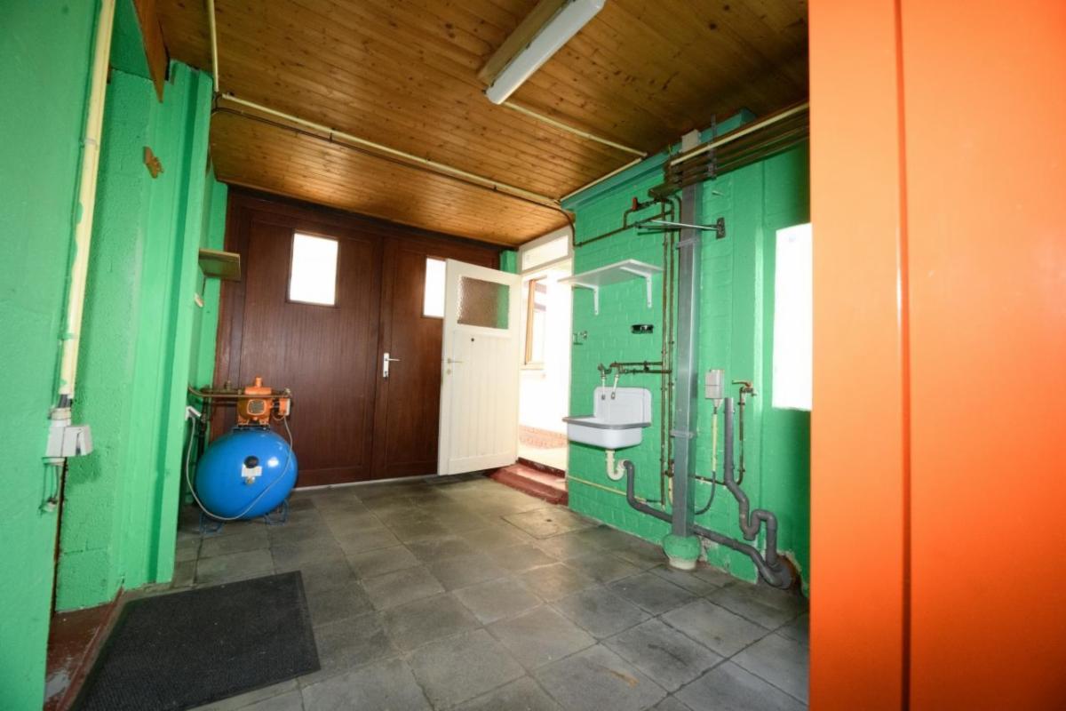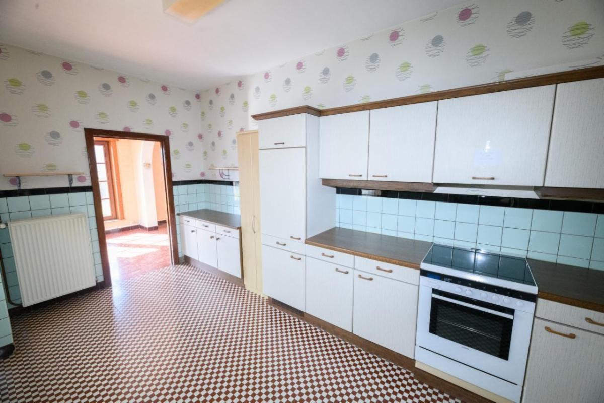 Au rez-de-chaussée : un hall d’entrée avec couloir, une chambre avant, une salle-à-manger et un salon (sous lanterneau lumineux), une seconde chambre attenante à une salle de douche avec lavabo, une cuisine ancienne équipée, une véranda à l’arrière (verre et plastic), un garage une pièce carrelé, une buanderie/chaufferie, un wc ;