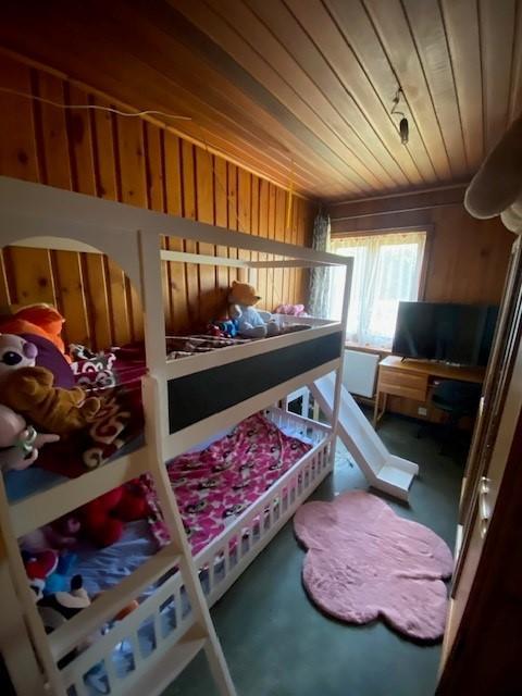 - Au niveau jardin (+/- 100 m²): une chambre, grand garage, buanderie et débarras.