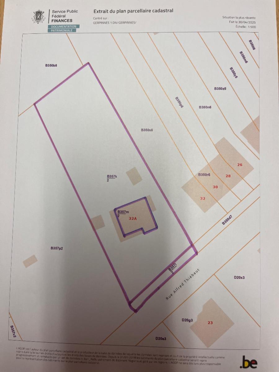 Grande villa (de type chalet) avec garage et vaste jardin d'une superficie de 24 ares et 35 ca situé à Gerpinnes, rue Alfred Thiébaut, 32A (rue calme) et composé comme suit :