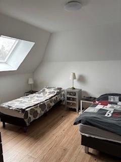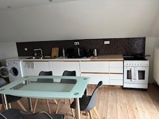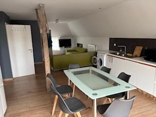A l'étage: vaste pièce de séjour, salon, salle à manger, cuisine ouverte, 2 chambres, salle de bain, wc séparé.