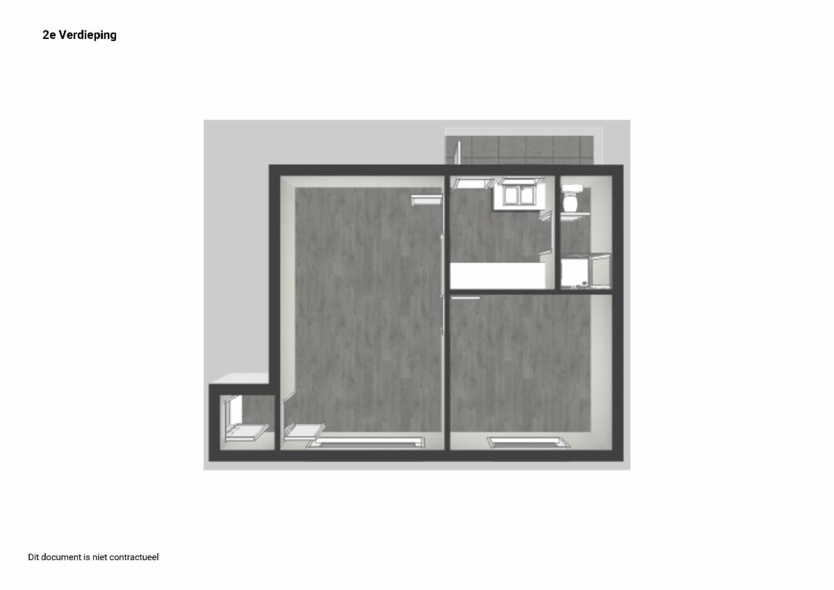 Omvat: inkomdeur, living, keuken, badkamer, slaapkamer.