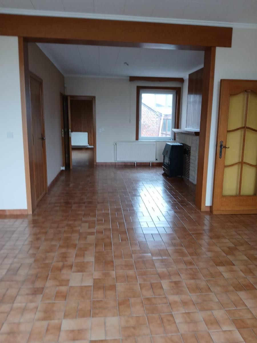Au rez de chaussée : 1 beau hall d'entrée avec dressing intégré, 1 salle à manger et 1 living avec 1 poele à bois, 1 cuisine non équipée avec arrière cuisine donnant sur le jardin, 1 WC.