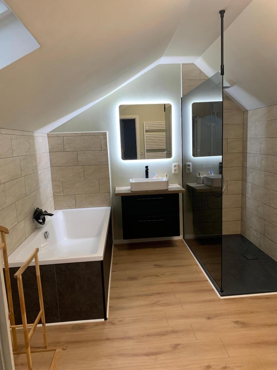 Au 1er étage : Hall de nuit desservant trois chambres, un dressing, une salle de bain avec baignoire et douche, ainsi qu’une toilette.