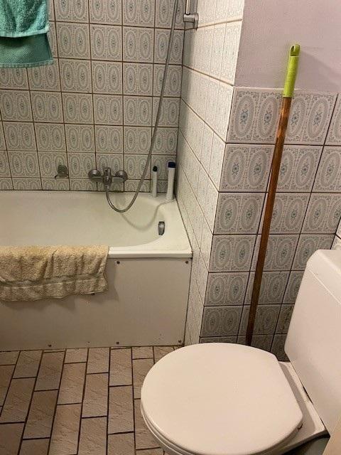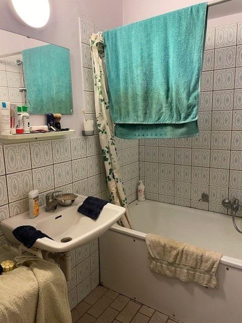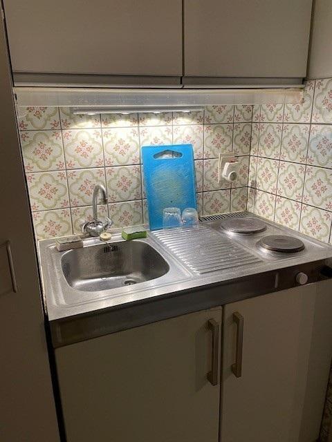 Studio au 5ème étage comprenant pièce de vie, kitchenette (meuble évier et taque de cuisson), salle de bain (baignoire, w.-c. et lavabo) et une cave.