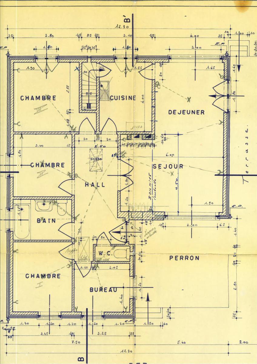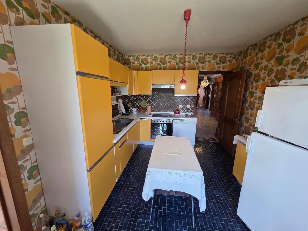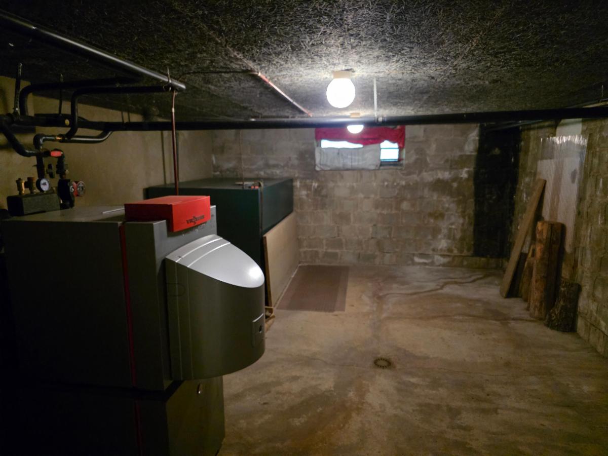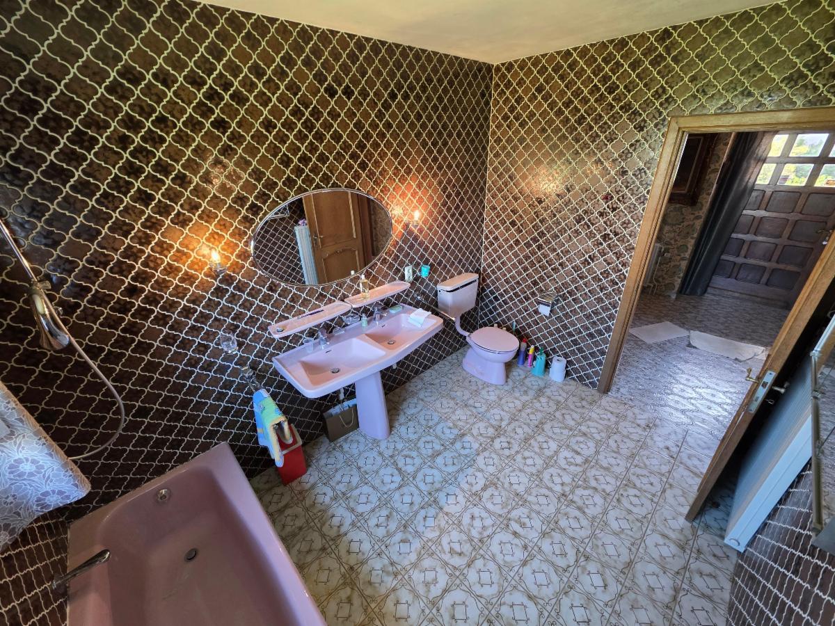 Rez-de-chaussée : vaste hall d’entrée, 3 chambres, salle de bain, séjour avec feu ouvert et poêle à bois, cuisine équipée, bureau, WC séparé ;