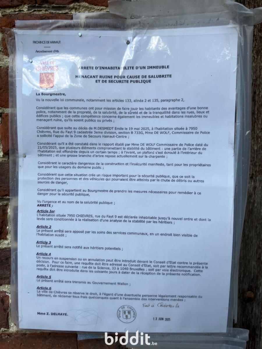 Le bien a fait l’objet d’un arrêté d’inhabitabilité le 13 juin 2025.