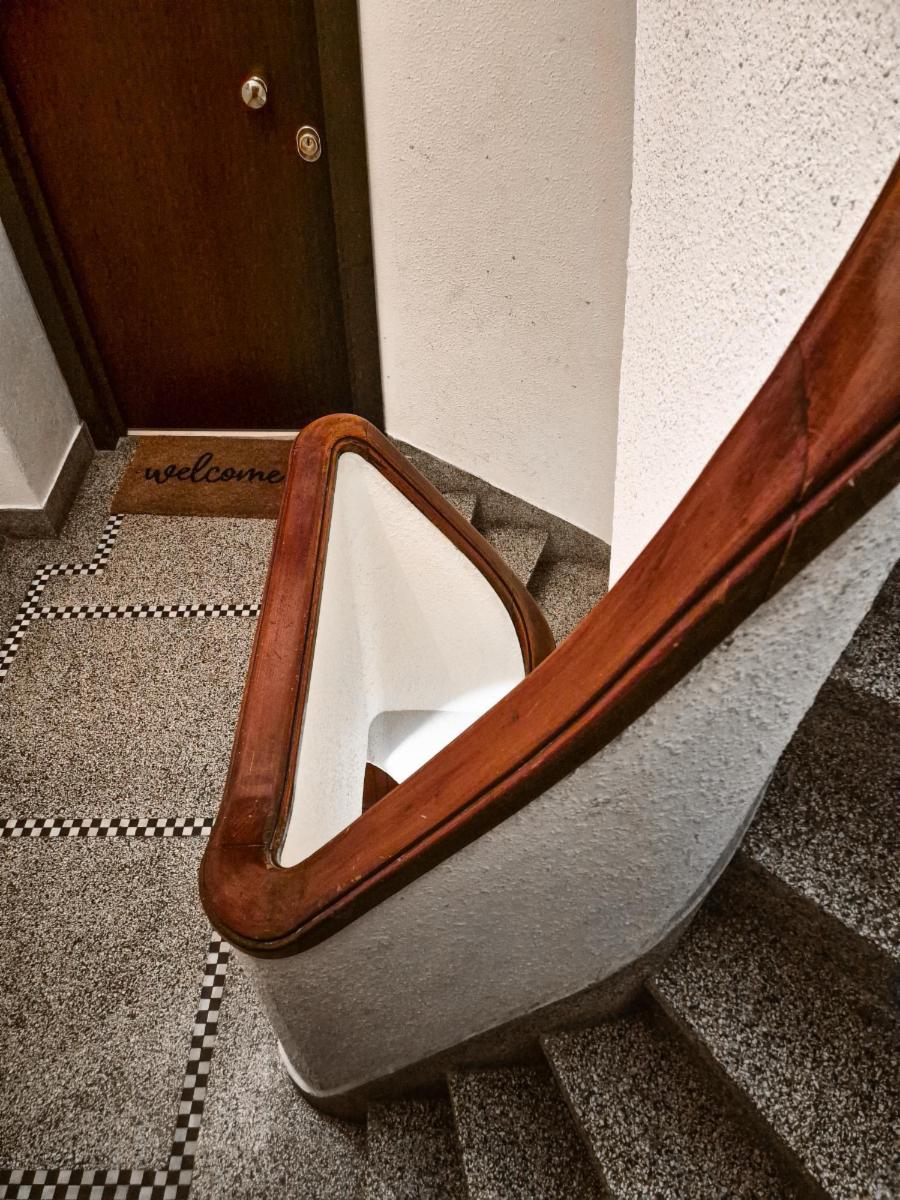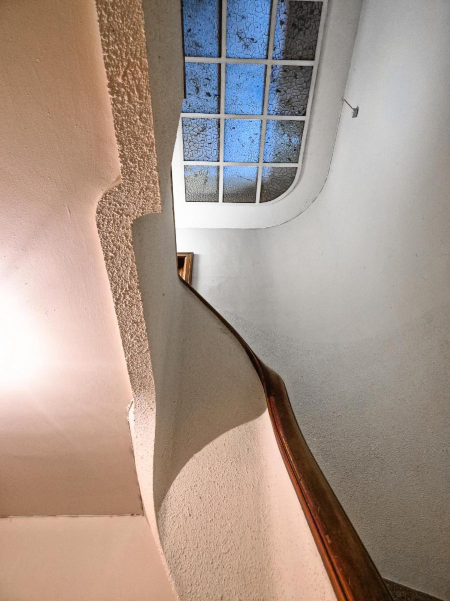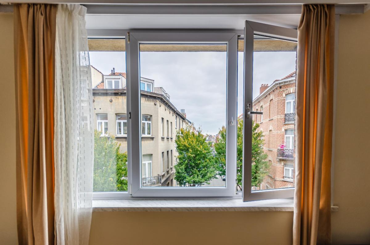 Un appartement situé au deuxième étage comprenant : hall d'entrée, chambre, spacieux séjour/ salle à manger (possibilité seconde chambre), cuisine séparée avec terrasse, salle de bains et water-closet séparé, ainsi que la cave numéro 1 au sous-sol.