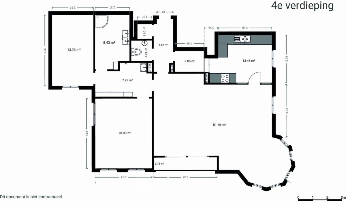 Omvattende: een ruime leefruimte met balkon, geïnstalleerde keuken, nachthall met bergruimte, 2 slaapkamers, badkamer met douche en een apart toilet.