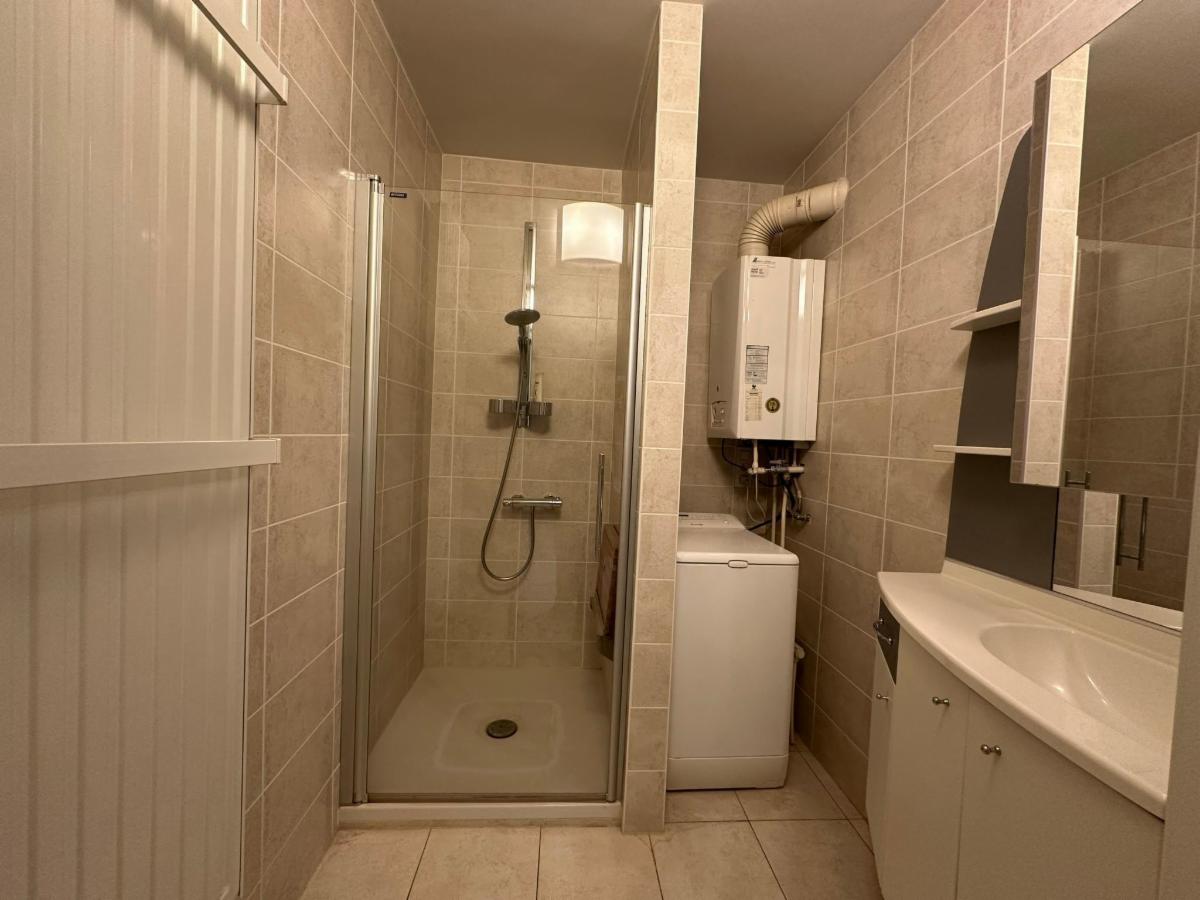met enkele wastafel en douche. Bij het appartement hoort er ook een privatieve kelderberging. Er is een lift aanwezig in de residentie.