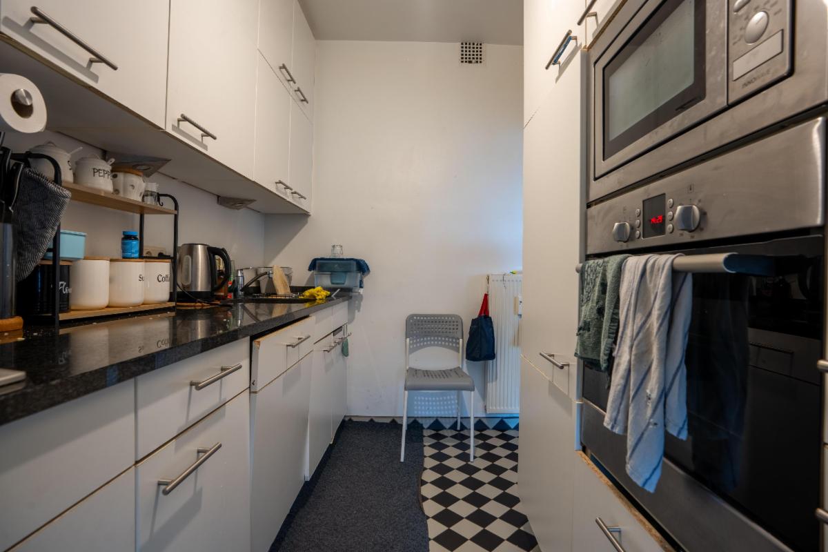 Prachtig appartement op zevende verdieping aan de Fruithoflaan, in het hart van Berchem. Het appartement werd gerenoveerd en beschikt over een mooie functionele keuken, een ruime en lichtrijke woonkamer, drie slaapkamers, een moderne badkamer en apart toilet. Overal visgraatparket aanwezig. Verder is er een kelder in de ondergrond. Het gebouw is voorzien van een lift en is gunstig gelegen nabij winkels, openbaar vervoer en alle voorzieningen. Gunstig EPC. De maandelijkse kosten bedragen €245 en omvatten onder andere privatieve verwarming en water, lift, onderhoud van het gebouw, blokpolis en syndicus. Mogelijkheid tot aankoop van een ruimte garagebox voor €27.500. Wordt momenteel verhuurd als hoofdverblijfplaats aan geïndexeerde huurprijs van € 1.266,22. G score: A P score: A