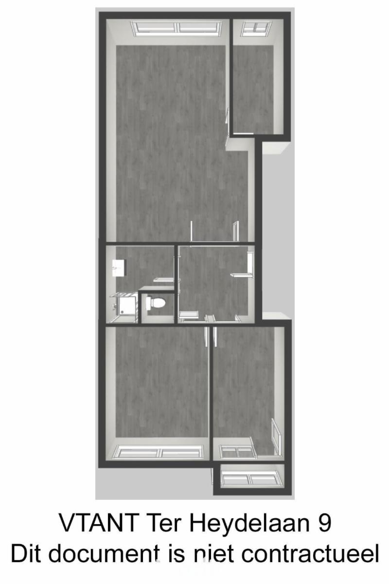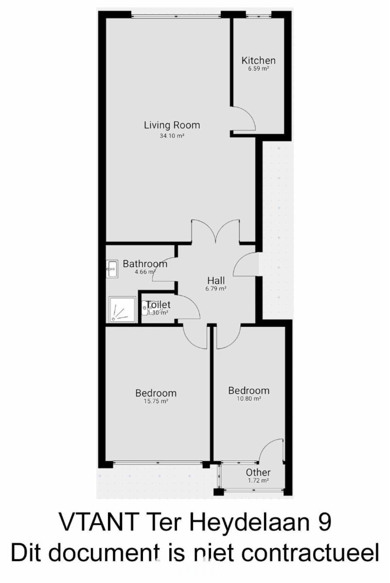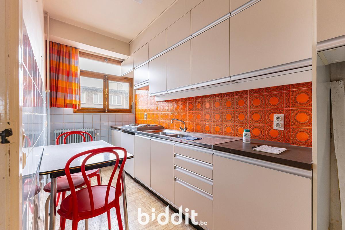 Met hall/vestiaire, living, keuken, badkamer, toilet, grote en kleine slaapkamer met terras en berging in kelder.