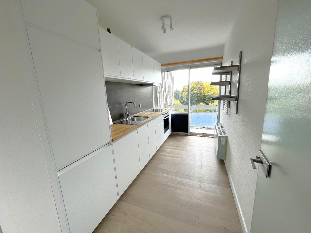 Appartement rénové situé au 6ème étage de la résidence "Les Templiers" et se compose : d’un hall d’entrée, d’un séjour, d’une nouvelle cuisine équipée, d’une toilette, de deux chambres, d’une salle de bains avec toilette et de deux balcons. Au sous-sol : une cave. Libre d’occupation.