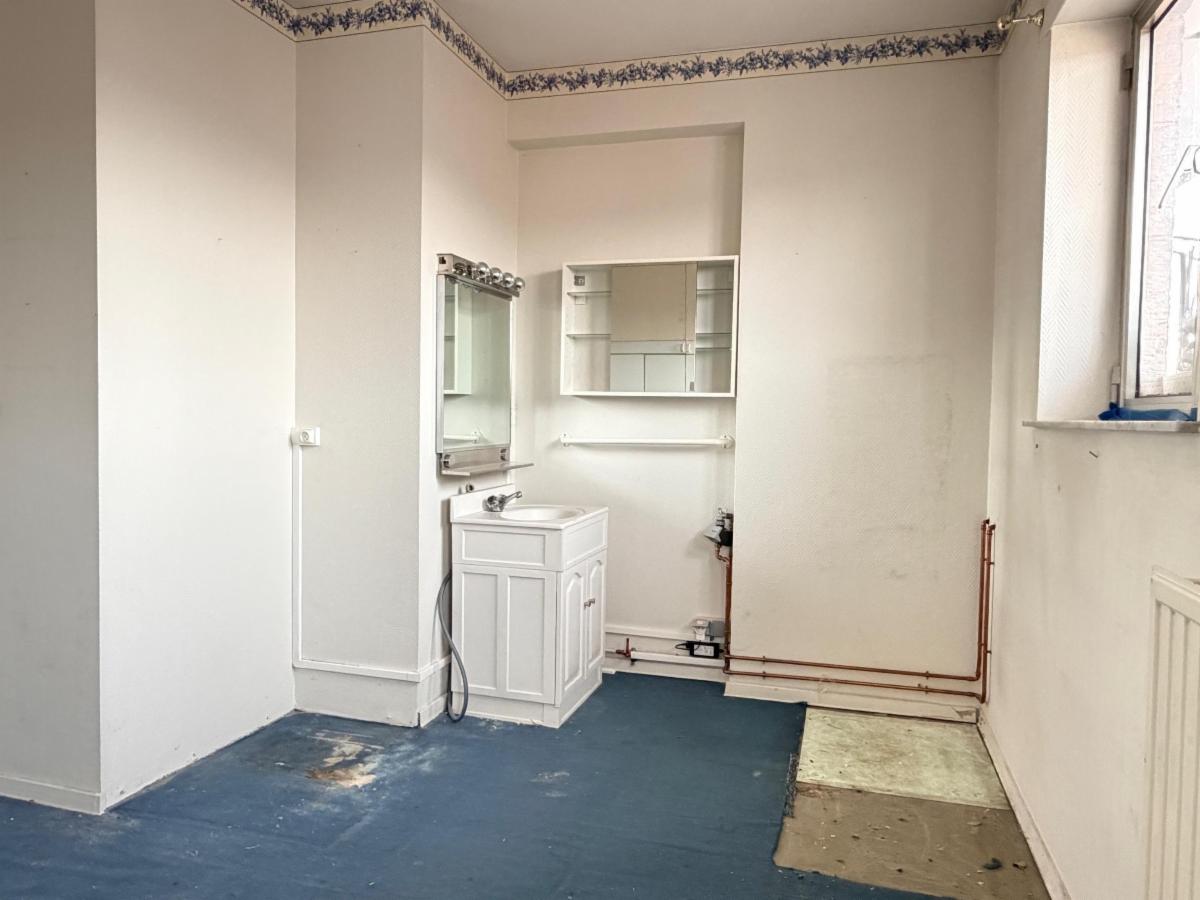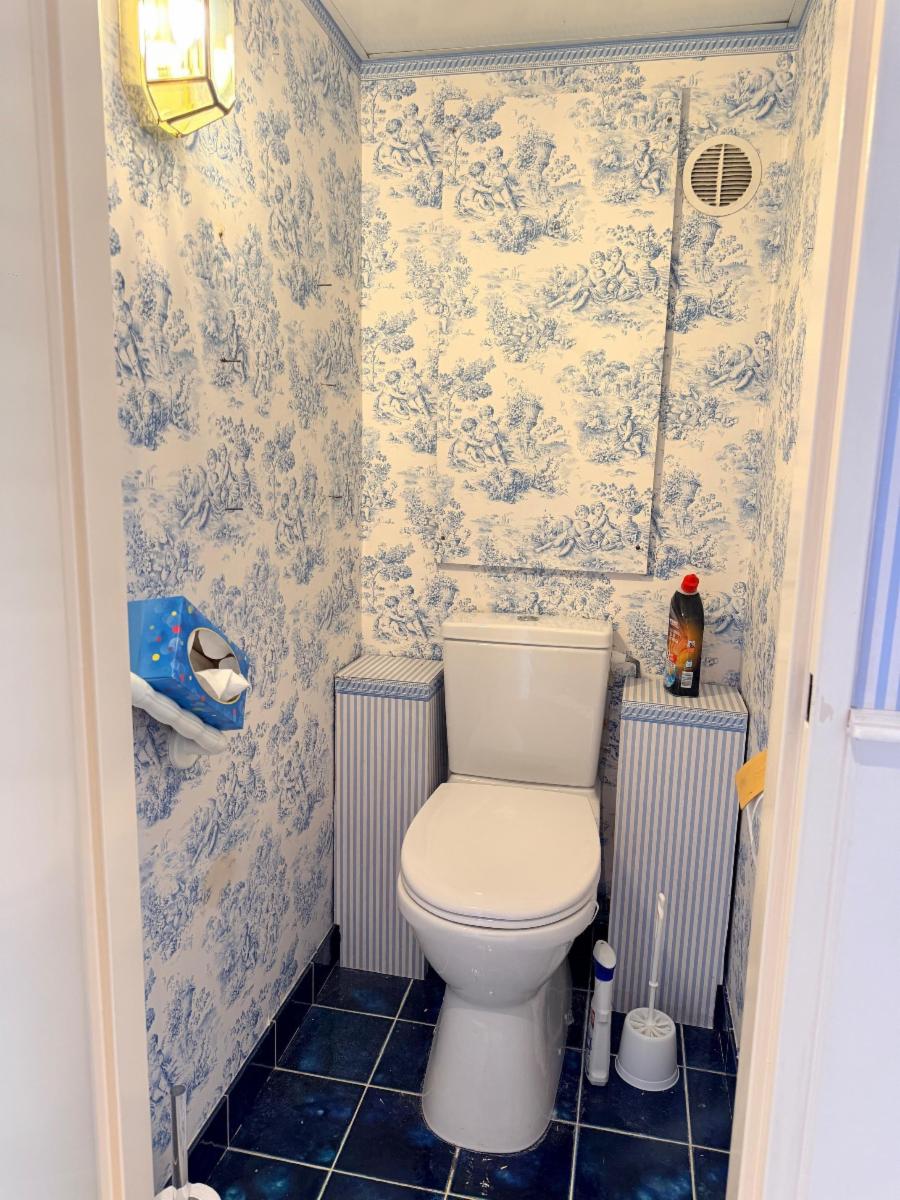 Revêtement de sol : tapis plain hall, living et chambre ; carrelage dans la cuisine, WC et salle de bains.