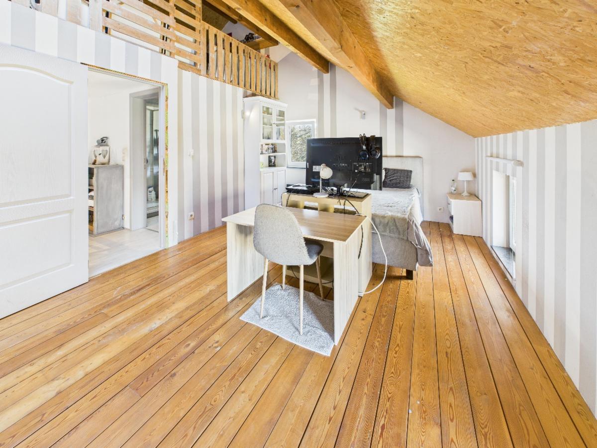 Étage: 3 chambres, une salle de bain et un grenier aménageable.