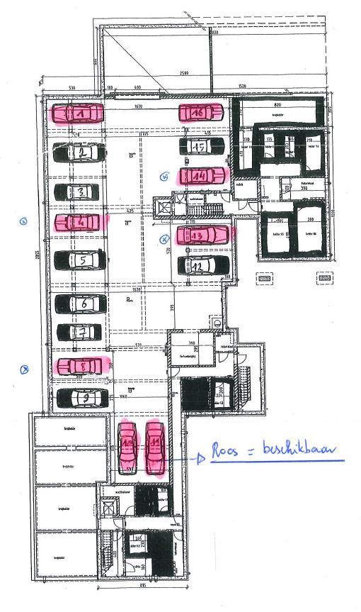 ONDERGRONDSE AUTOSTAANPLAATSEN genummerd 1, 4 , 8, 10, 11, 13, 14 en 16.