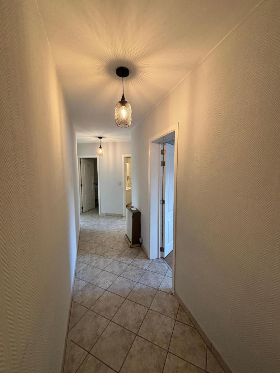 Bel appartement situé au 1er étage d'un petite copropriété, avec caves et garage, se composant comme suit: