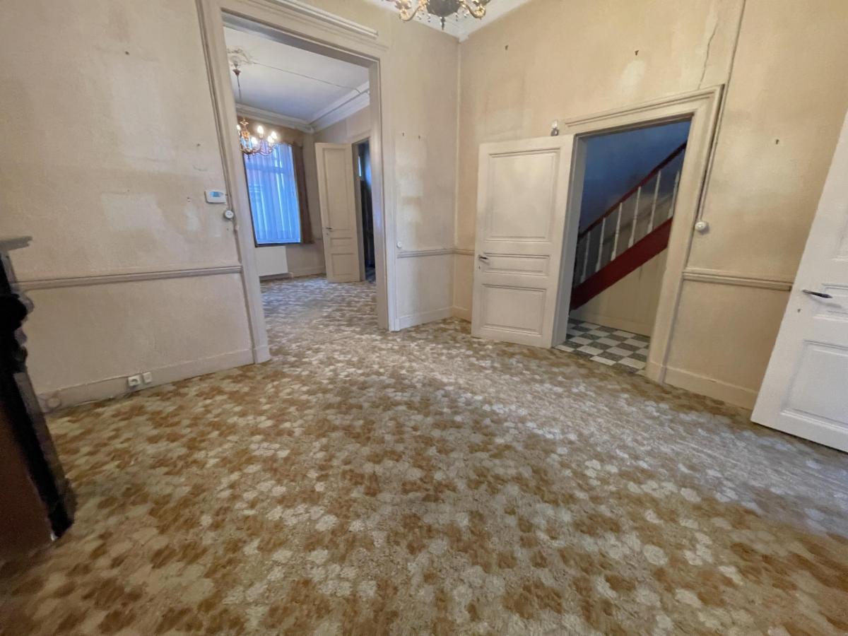 Belle maison de maître 3 façades avec cour et vue sur la Tour Simone développée sur 4 niveaux. Rez-de-chaussée : Hall d’entrée (11,92m²), salon (19,19 m²), salle à manger (14,43 m²), cuisine non équipée (9,94 m²), WC (0,80 m²), véranda (8,52m²) et cour. Entresol : Une chambre (11,19 m²). Premier étage : Palier, deux chambres (14,87 m² et 16,17 m²) et une salle de bains (8,25 m²). Deuxième étage / Grenier : Paliers, un bureau (5,65m²), une chambre (10,02m²), deux greniers (espace aménageable) (19,37m² et 27,73m²). Sous-sol : 3 caves (ancienne cave à charbon et chaufferie). Superficie habitable (avec sous-sol et grenier) : ± 229,52 m². Châssis bois simple vitrage et châssis en aluminium pour la véranda. Chauffage par chaudière au mazout. Situation idéale en plein centre-ville, proche de toutes commodités, proche des axes routiers. A rénover (beau potentiel). Renseignements :