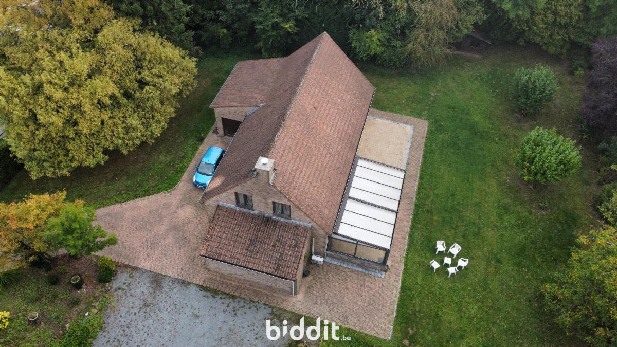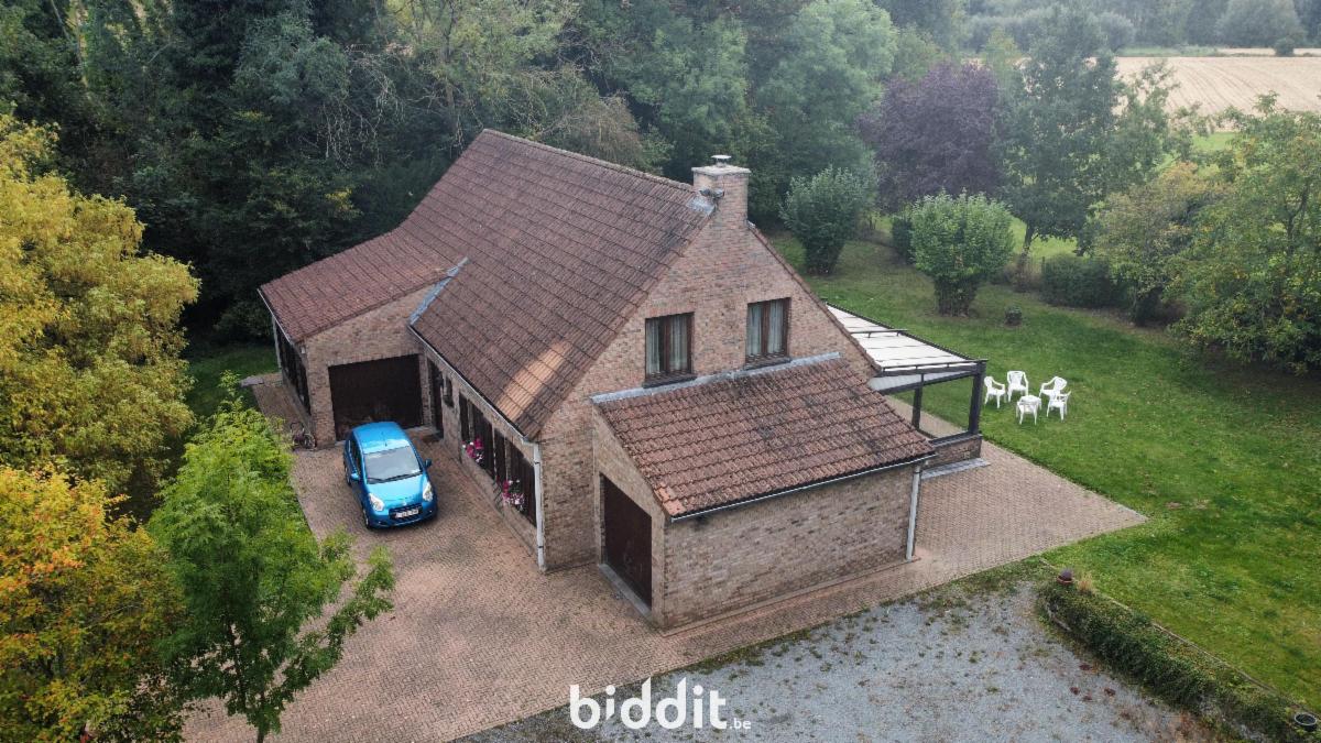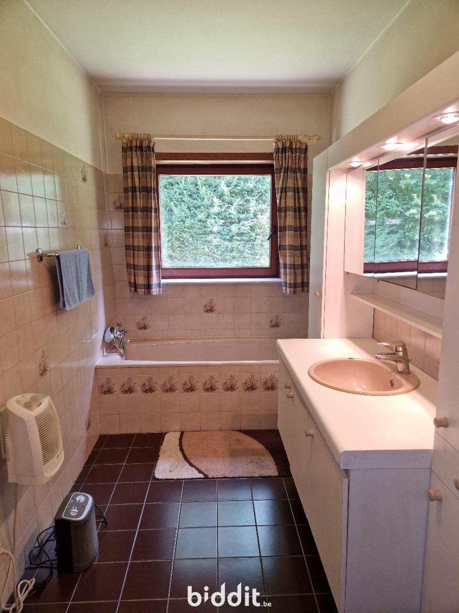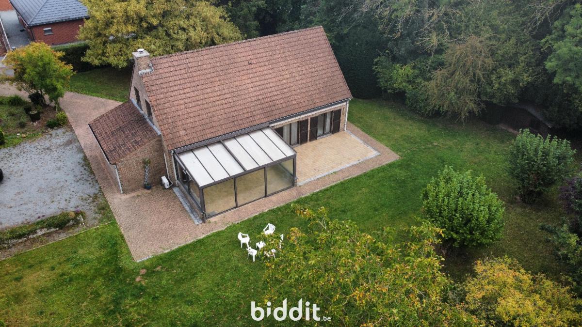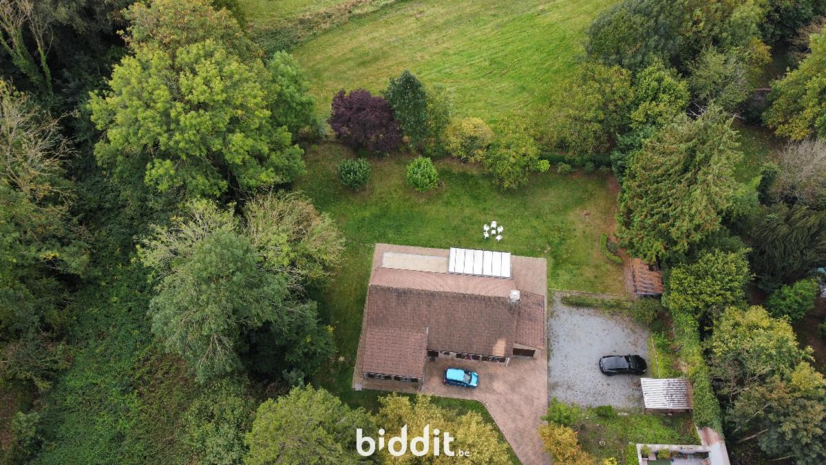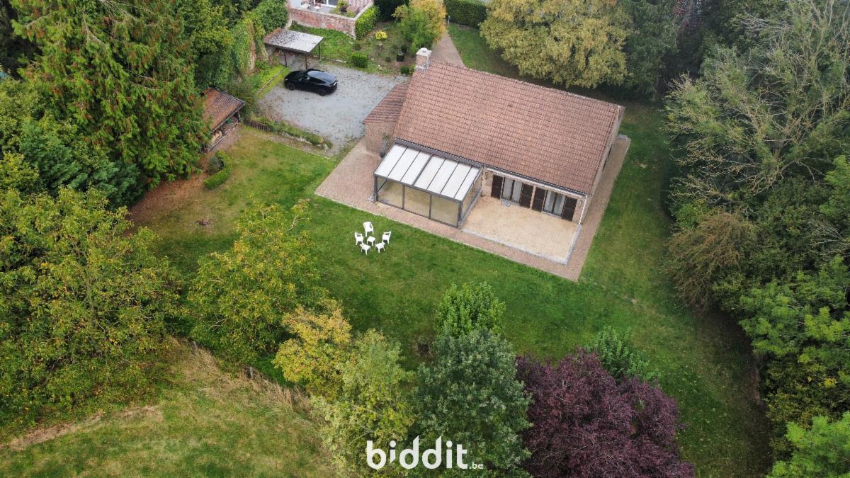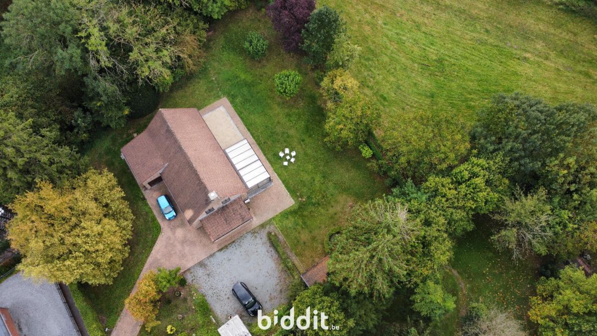 belle villa au calme dans un cul de sac, à 200m du centre du village dans cadre verdoyant, comprenant : rez : hall, living avec feu ouvert, cuisine équipée en chêne, WC, bureau, grande véranda, 2 chambres, salle de bains avec WC, bain et douche, 2 garages - 1er étage : hall de nuit, 2 chambres, grand grenier aménageable