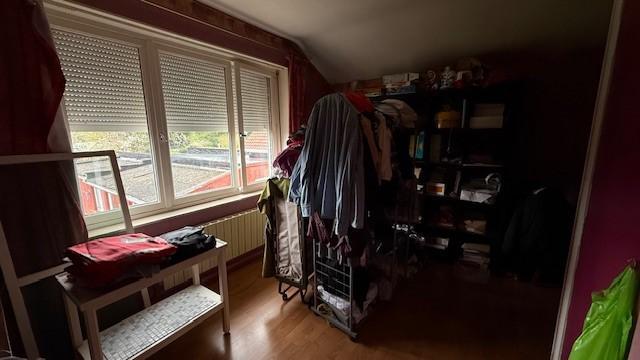 RDC: hall d'entrée, wc séparé, petit espace de rangement, séjour, cuisine équipée.