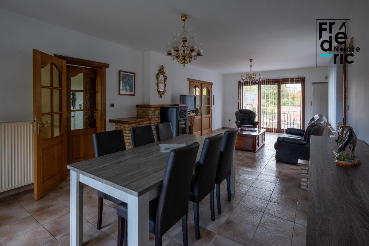 Depuis la cuisine et le living on accède à la terrasse et au jardin qui comprend une serre et un chalet de jardin. Toutes les fenêtres et portes sont équipées de volets (manuels ou électriques) et la maison dispose d'un système d'alarme.