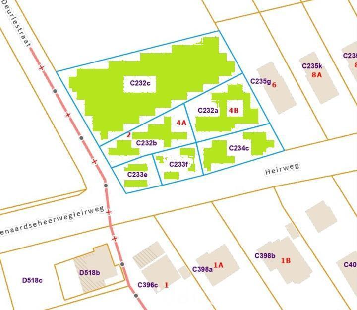 Blok van 6 bouwgronden gelegen op de hoek van de Heirweg en Deurlestraat te De Pinte.