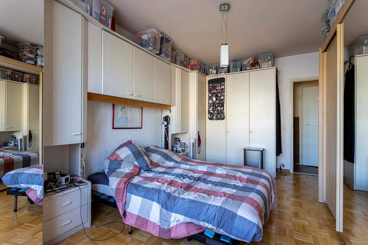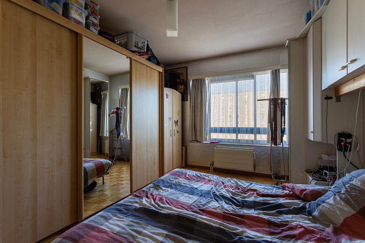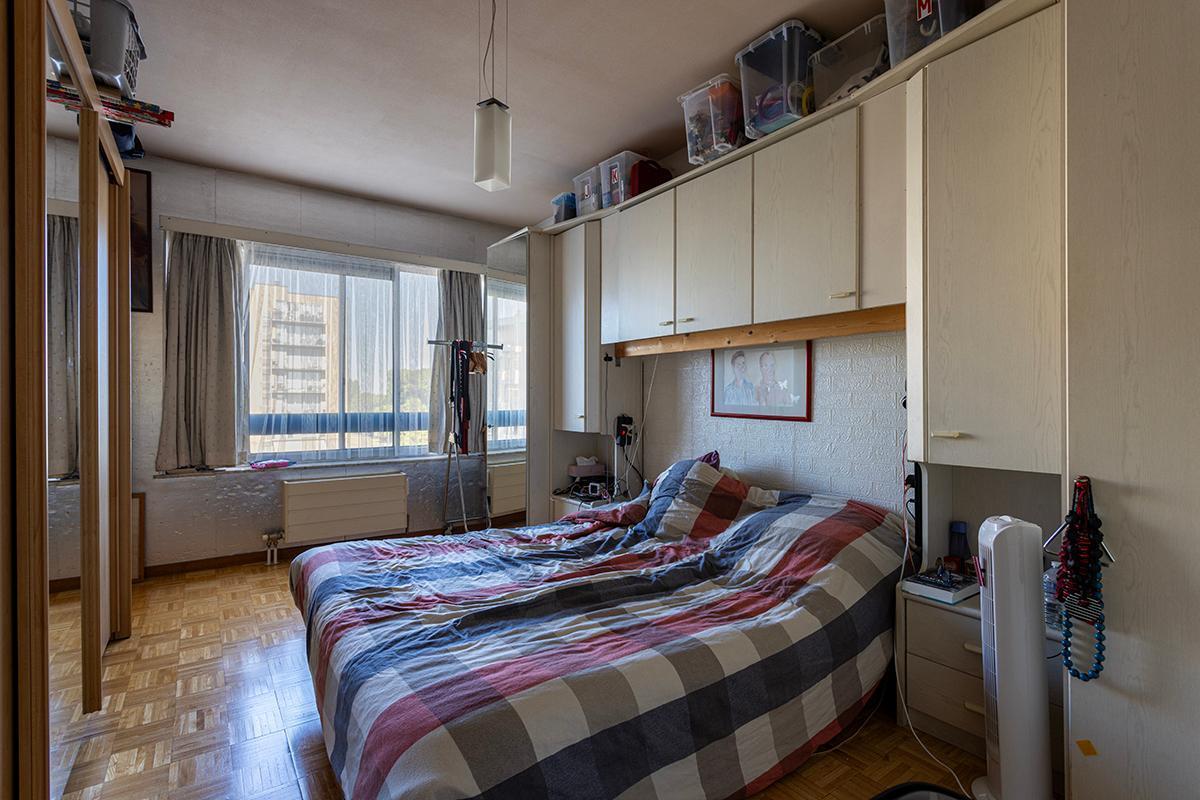 Appartement gelegen op de 5de verdieping. Het appartement omvat 2 slaapkamers, wc, badkamer, living, terras en een kelder in de kelderverdieping.