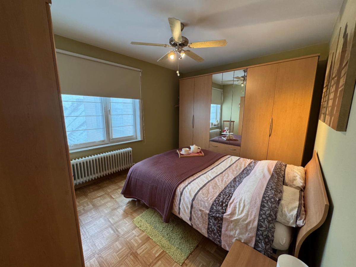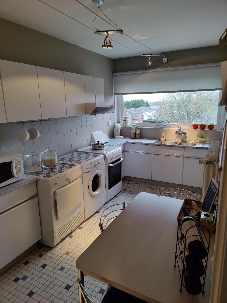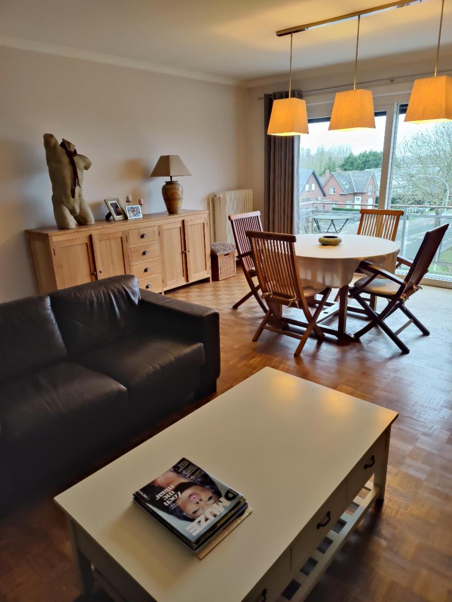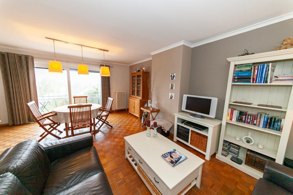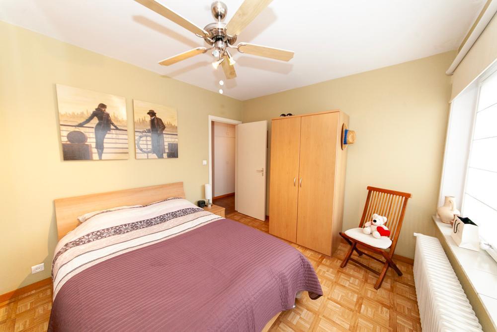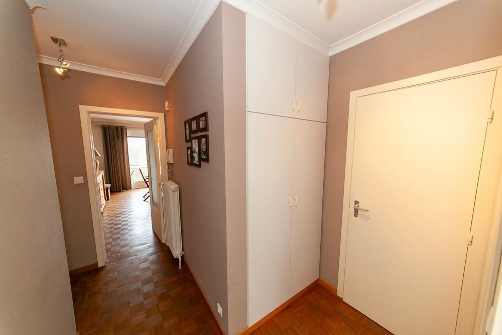 Indeling: inkom met inbouwkast en apart toilet, open lichtrijke leefruimte met aanpalend terras, gerieflijke keuken. Ruime slaapkamer, 2e ruime slaapkamer of bureauruimte, badkamer met bad en douchesysteem. Extra: overdekte standplaats en afgesloten kelderberging.