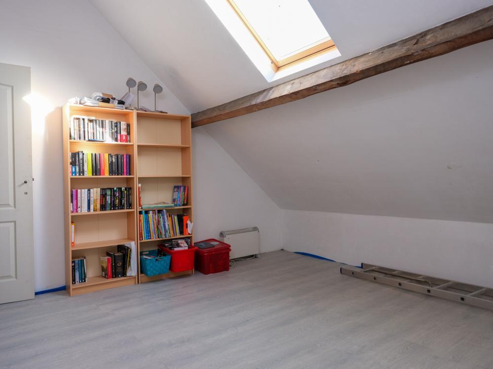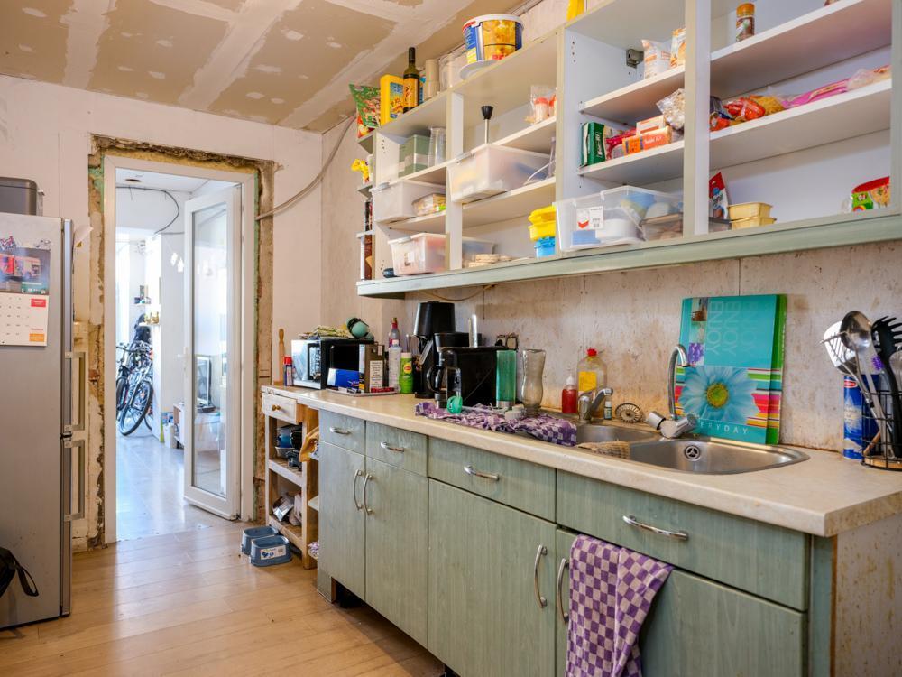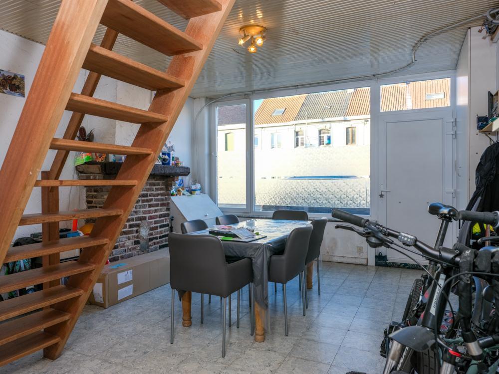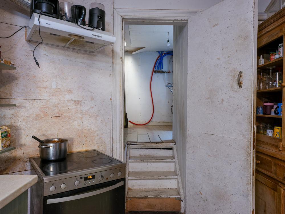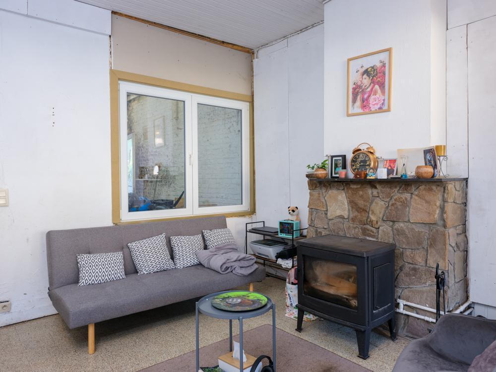 Te renoveren halfopen bebouwing. Indeling: grote living met houtkachel, keuken, kelder, berging met aansluiting voor wasmachine; eerste verdiep: trap die uitkomt aan de badkamer met douche, wastafel en toilet, ruime hal, 2 slaapkamers; 2e verdiep: 2 gerenoveerde slaapkamers; ruime tuin. G score: A P score: A