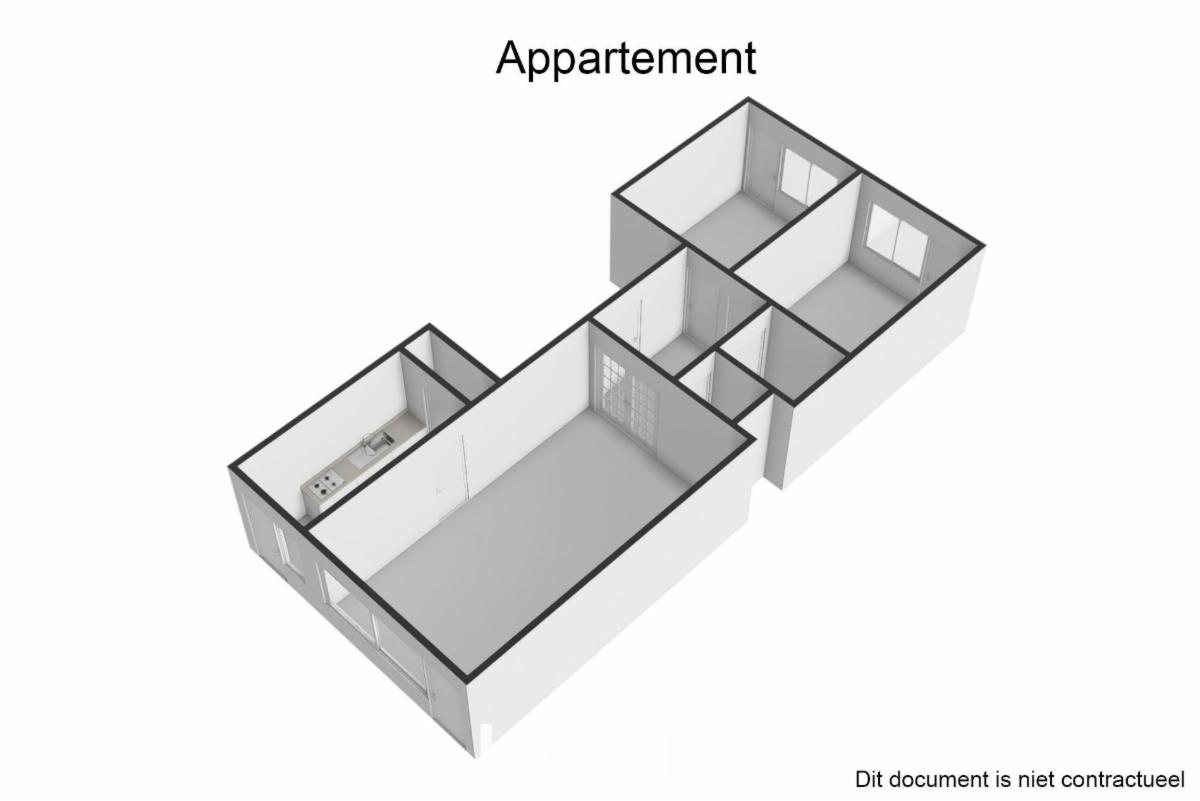 Ruime leefruimte met veel natuurlijk licht, 2 slaapkamers en badkamer.
