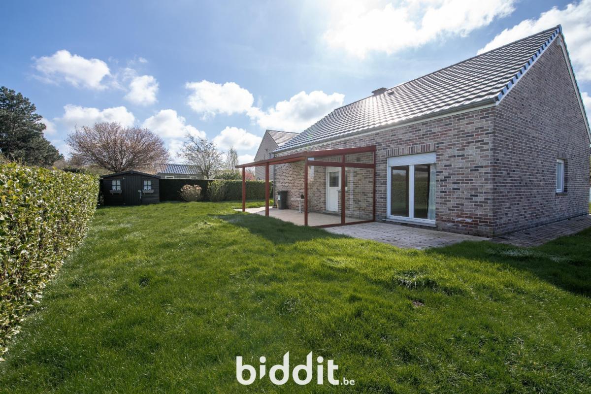 Charmant bungalow comprenant un hall d’entrée, un séjour, une cuisine, deux chambres, une salle de bain et un débarras.