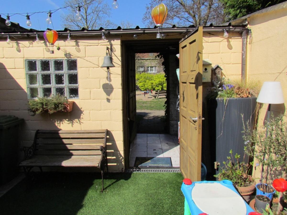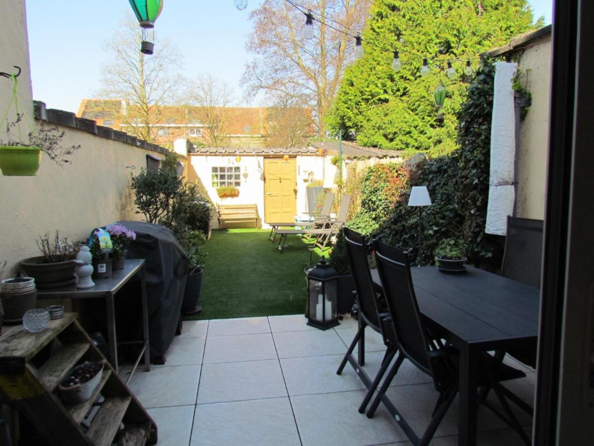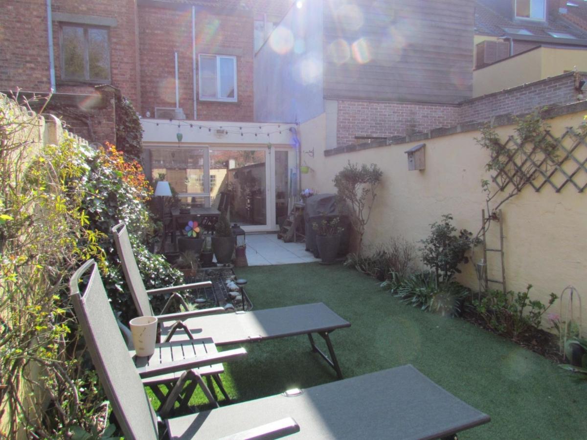 Buiten is er een gezellig terras aanwezig, een tuintje en een gerieflijk tuinhuis (voorzien van elektriciteit) met uitgang naar het achterliggend Fluweelpark.
