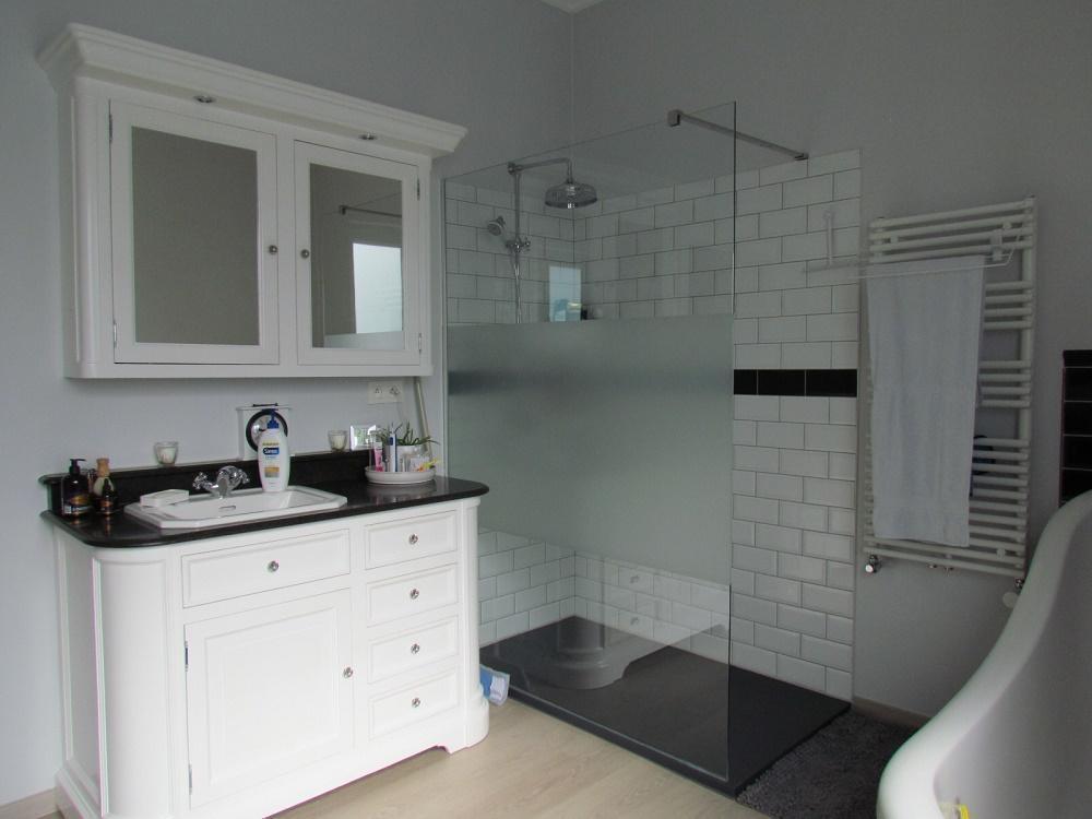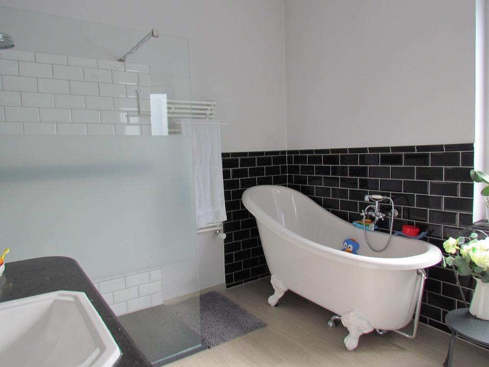 Op de eerste verdieping bevinden zich de badkamer met badkamermeubel; inloopdouche, retro badkuip, ingemaakte kasten en toilet alsook 1 ruime slaapkamer met ingemaakte kasten.