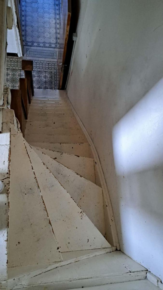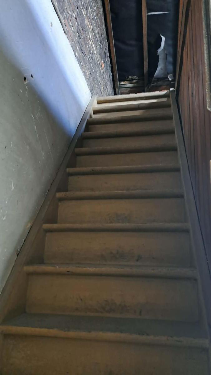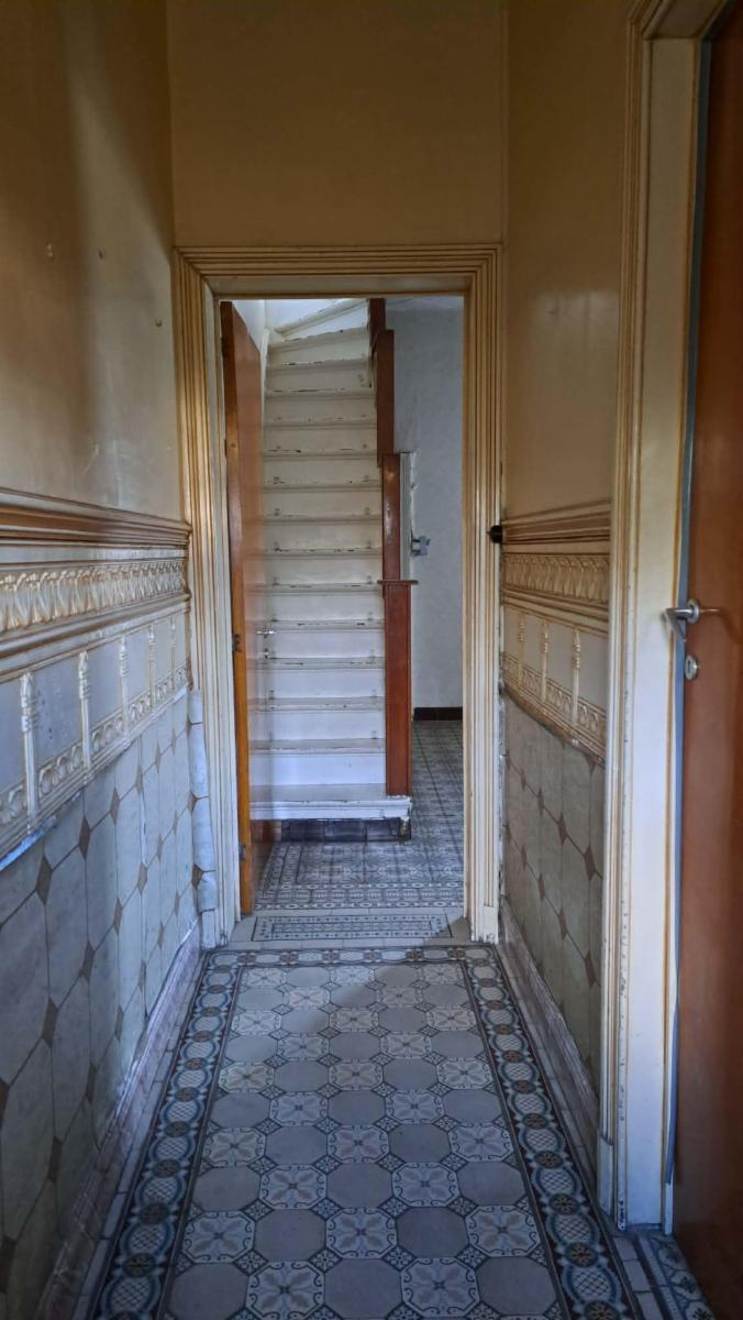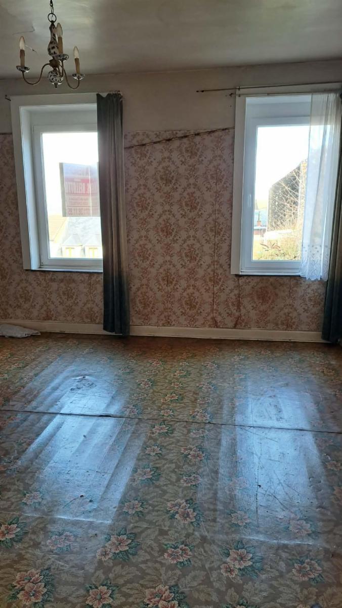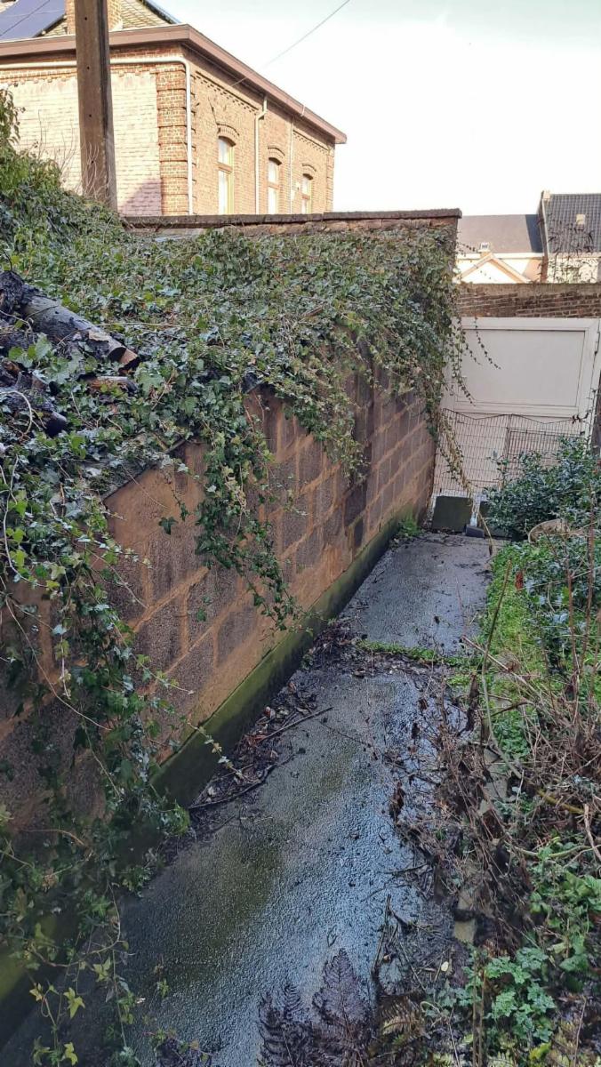 Ce bien se compose au rez : hall d'entrée, grand living, pièce de séjour, cuisine, salle de bains; étage : 3 chambres communicantes; grand grenier aménageable avec accès par escalier; caves. Cour et Jardin, Passage latéral. Garage. Poêles au gaz et radiateur électrique. Châssis DV en PVC avec volets. Panneaux photovoltaïques., Raccordement à l'égout. Superficie: 2 a 60 ca - RC: 505 €. Libre d'occupation
