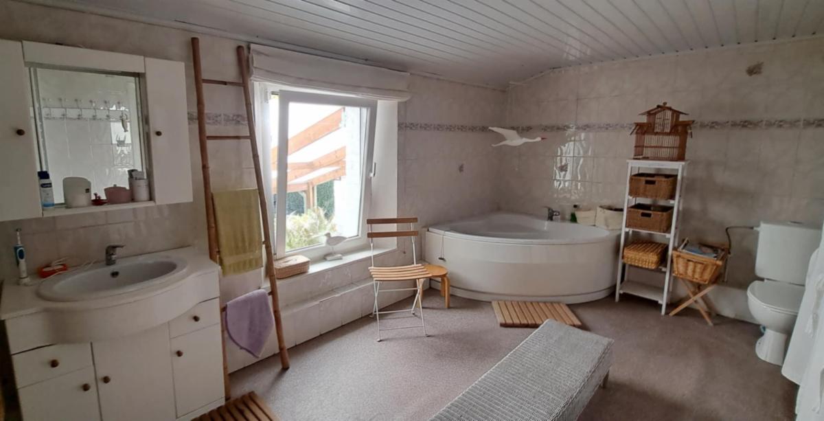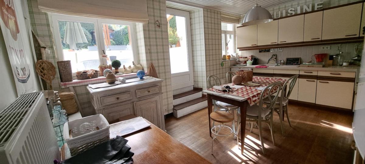 Commodités : DV en pvc, CC mazout, caves, 2 greniers de rangement, jardin, chalet, garage avec porte électrique. Surface habitable de 200 m².