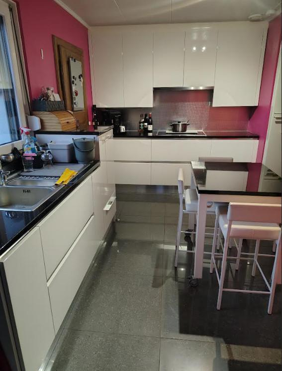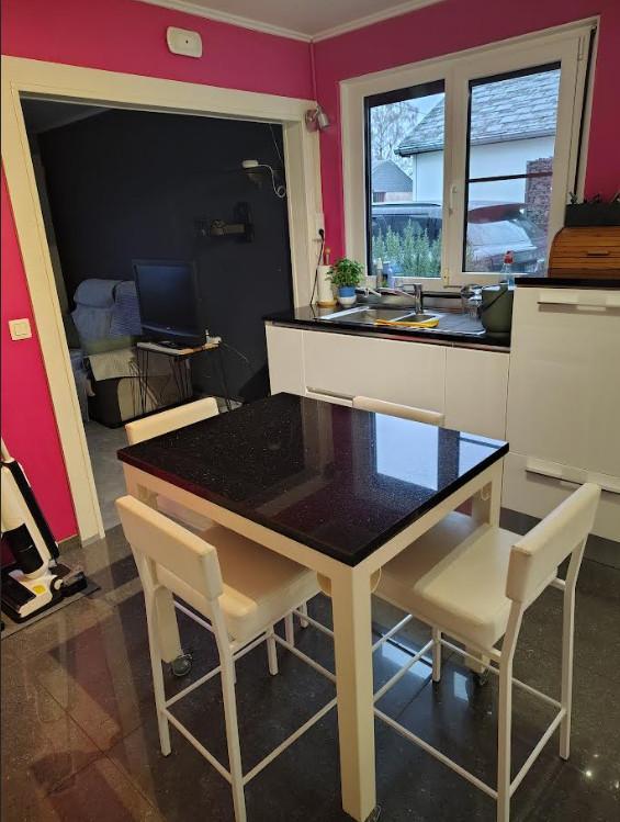 La maison se compose d’un spacieux living de 25,41 m², agrémenté d’un poêle à pellets, offrant une atmosphère chaleureuse et conviviale. Celui-ci communique avec une cuisine ouverte entièrement équipée de 9,58 m², idéale pour les moments de partage. La cuisine dispose de nombreux équipements de qualité : lave-vaisselle en hauteur, four, micro-ondes, taque vitrocéramique, hotte et réfrigérateur.
