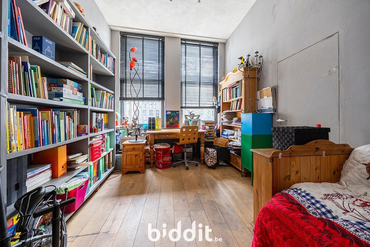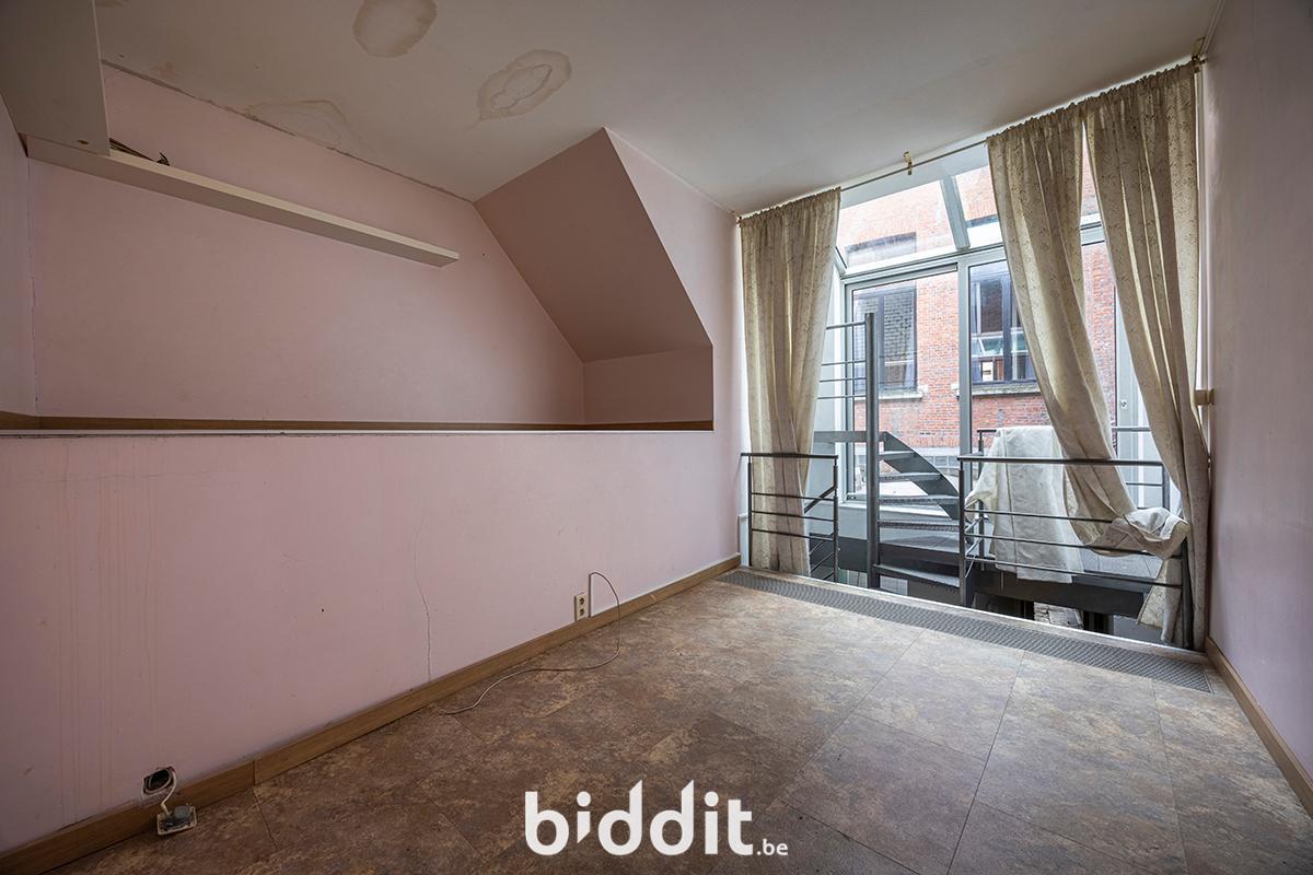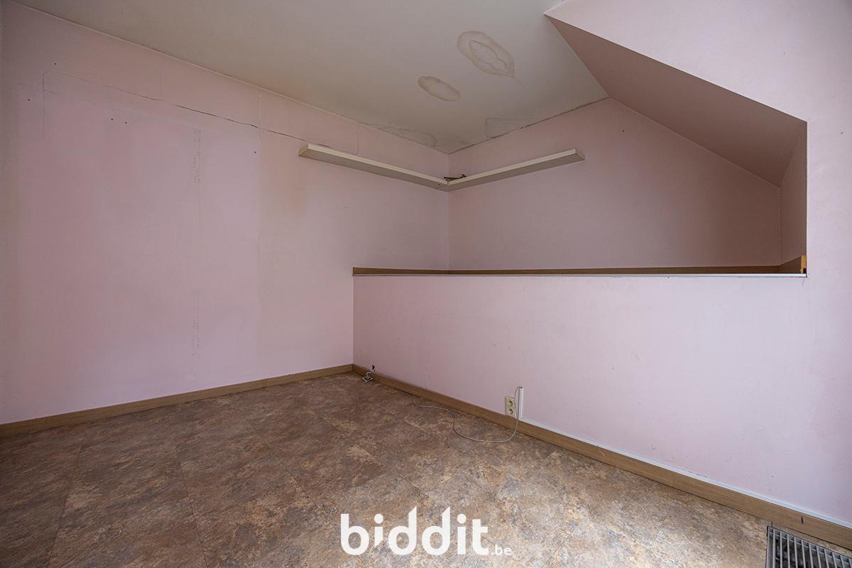 - Achterhuis: goed afgewerkte kamer / zolderruimte met plat dak en op de gang kast met chauffageketel van het achterhuis.