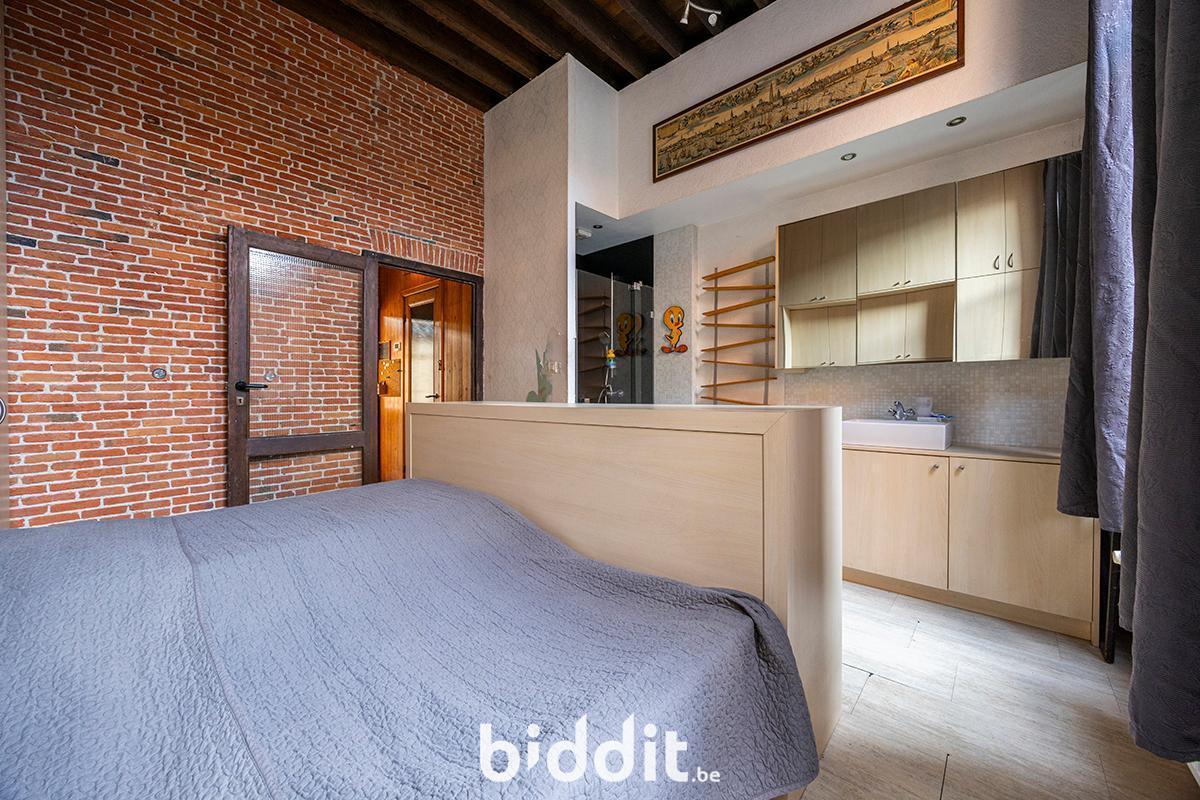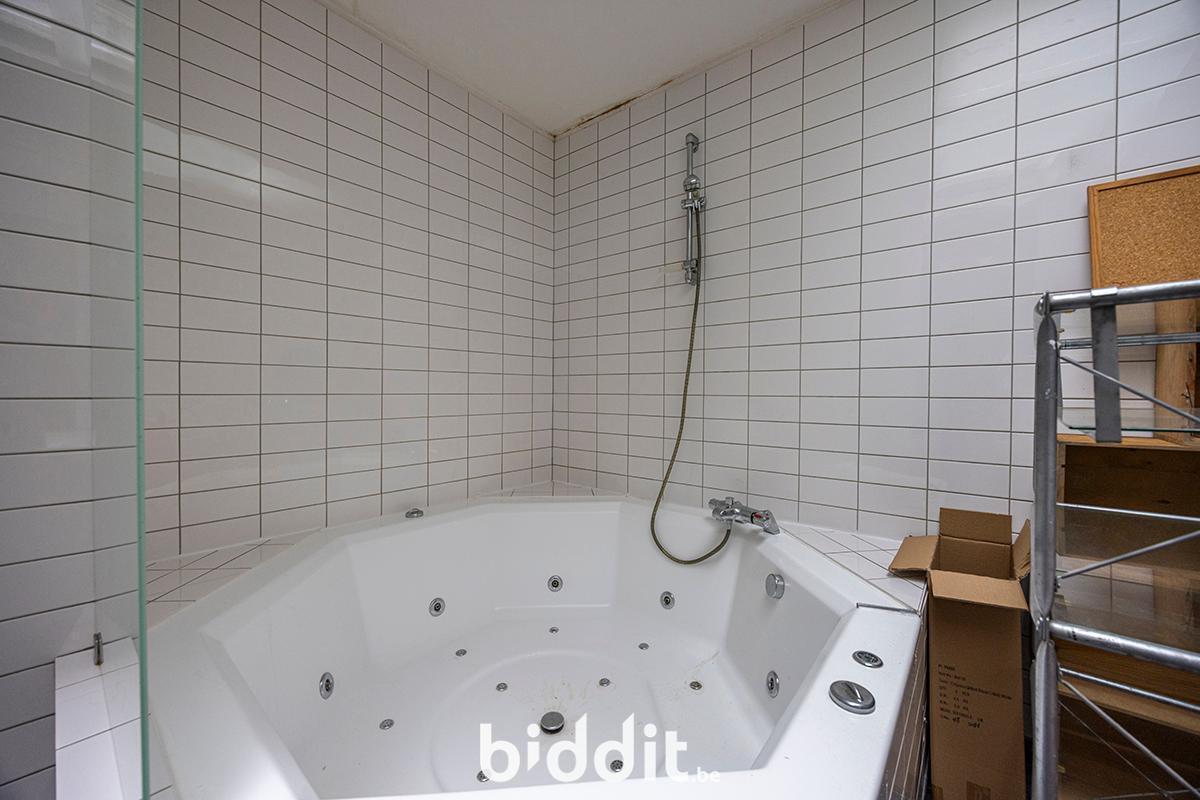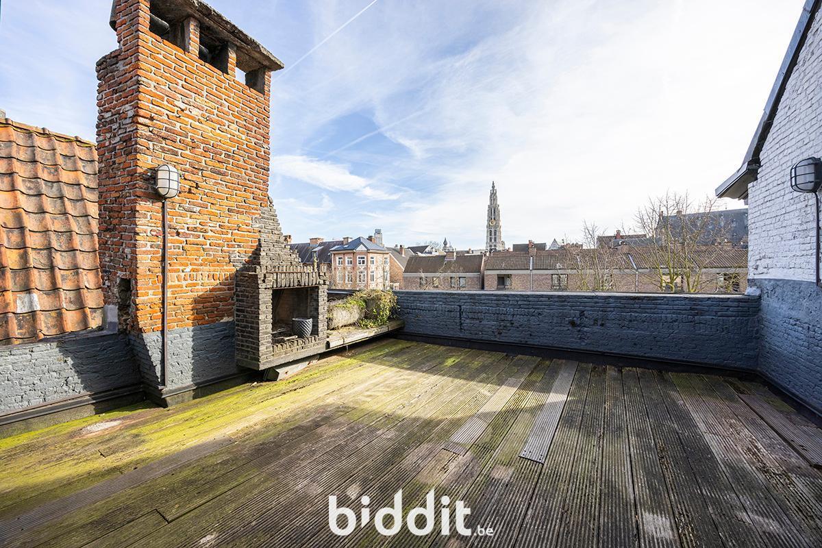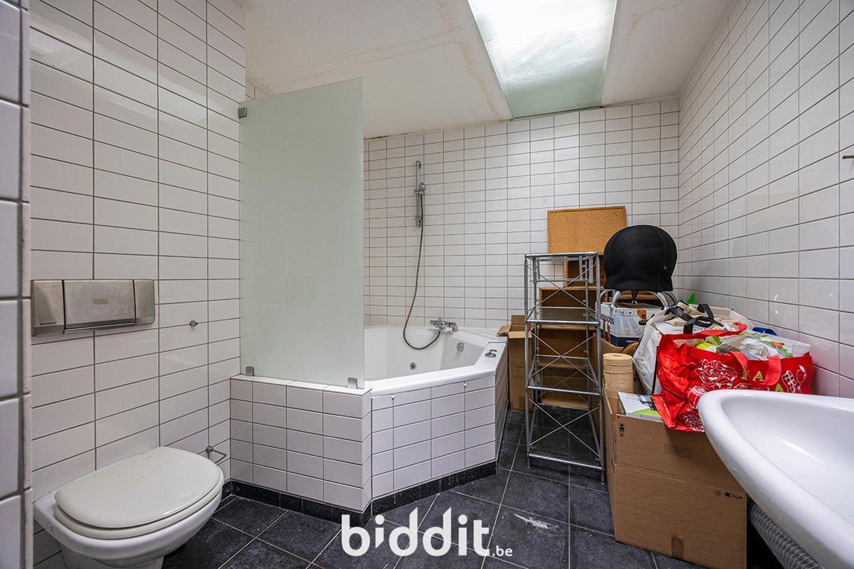 - Achterhuis: goed afgewerkte kamer / zolderruimte met plat dak en op de gang kast met chauffageketel van het achterhuis.