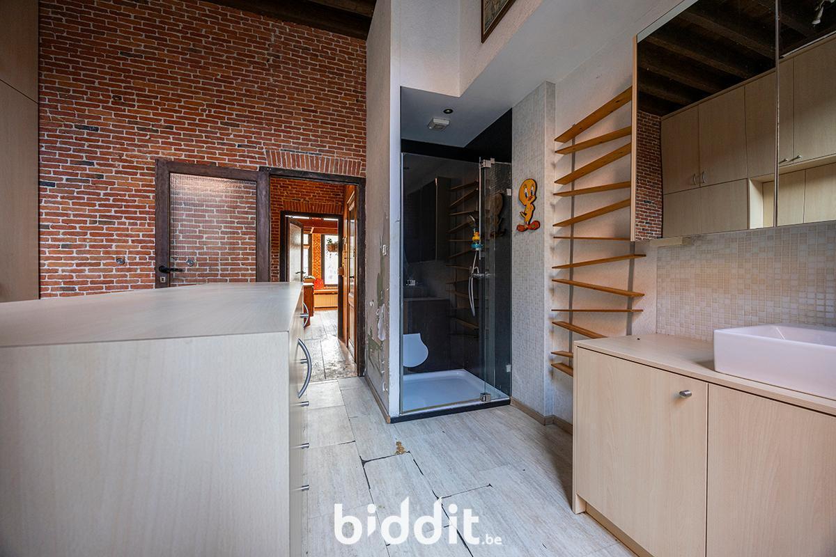 Achterhuis: achteraan aparte ingang naar een achterhuisje met keuken, douche ruimte met lavabo en een andere ruimte met wc (vroegere badkamer) en draaitrap naar 1e verdieping van het achterhuis.
