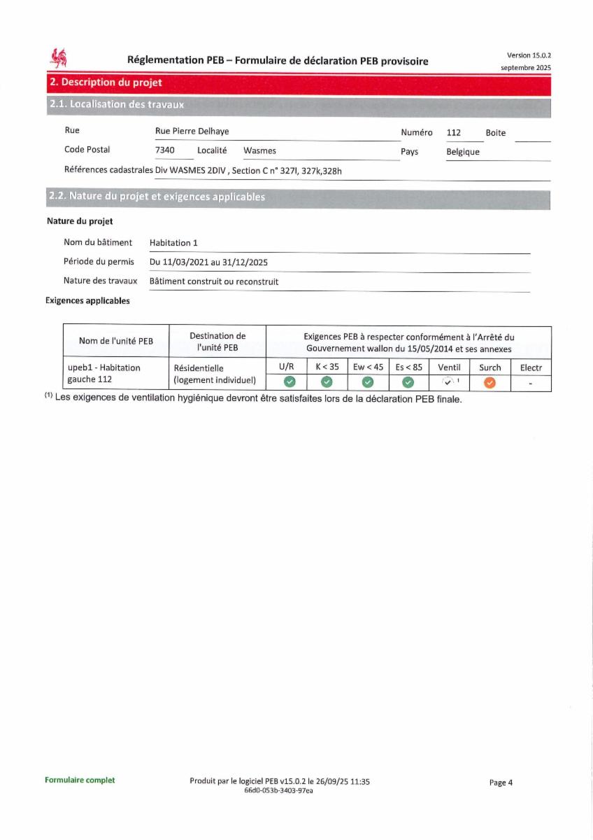 Une maison d'habitation « gros œuvre fermé », avec terrasse, garage et jardin sise rue Pierre Delhaye 112, cadastrée C numéro 391BP0000, pour 02 a 09 ca