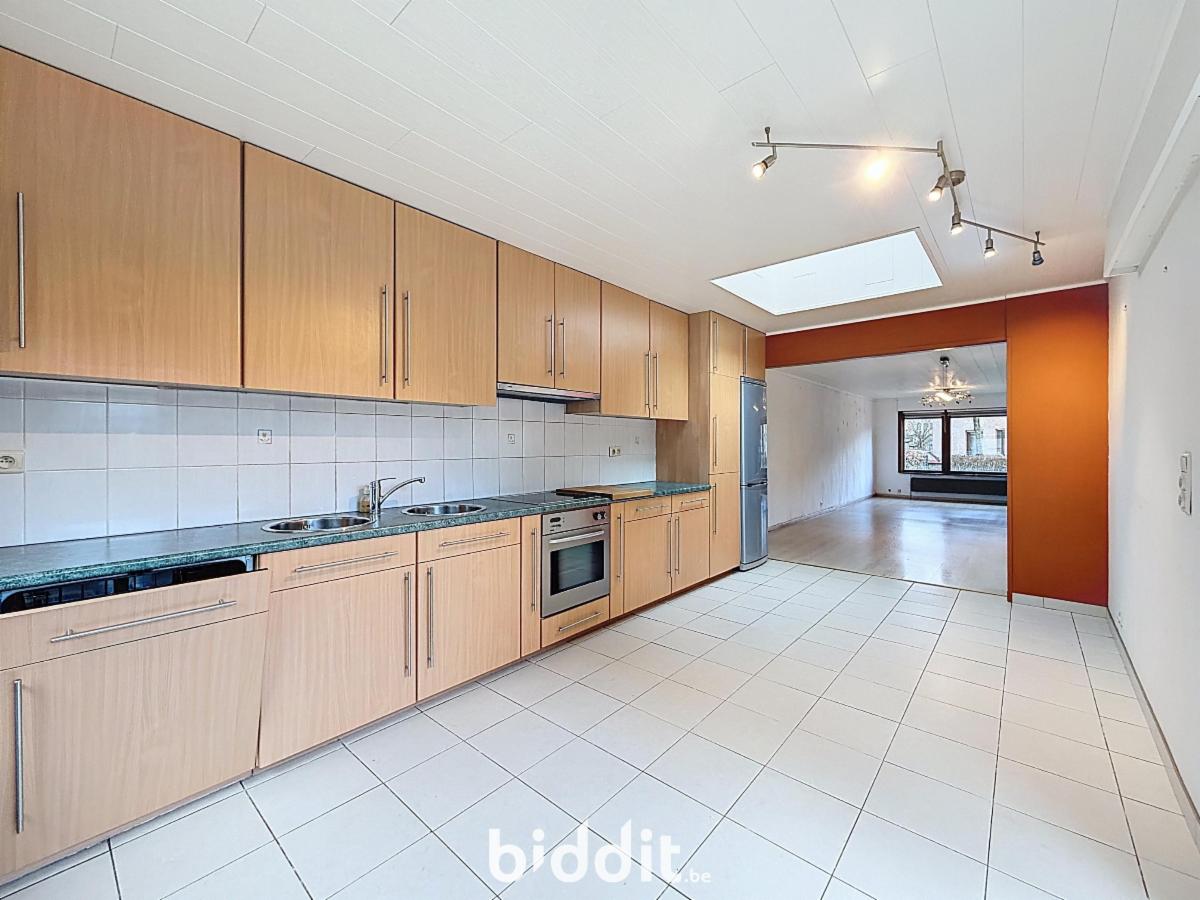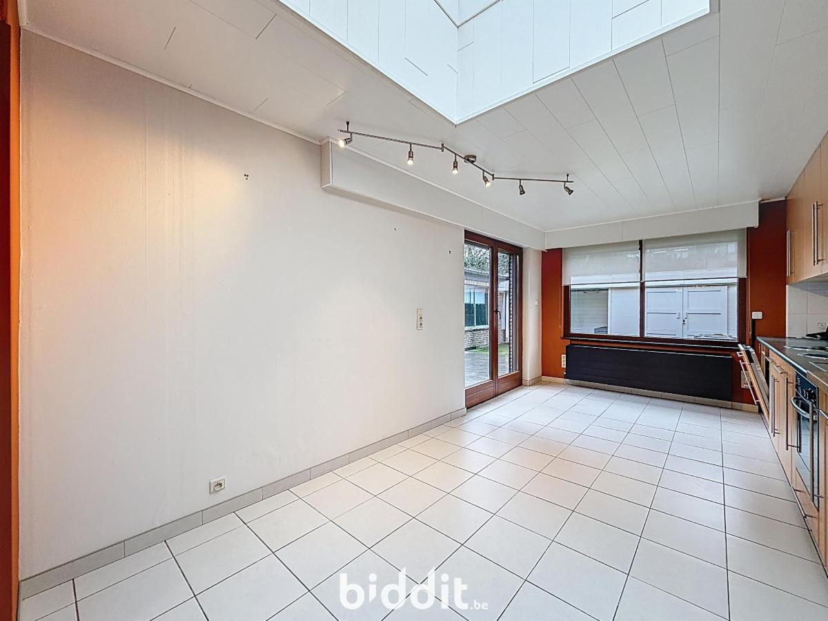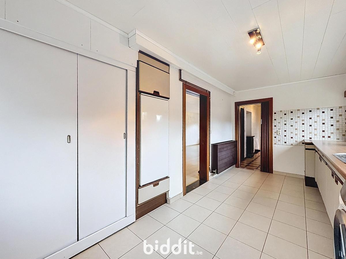 Gelijkvloers: woonkamer, gerenoveerde keuken, afzonderlijke ruime bijkeuken/wasplaats, inkomhal en afzonderlijke wc;