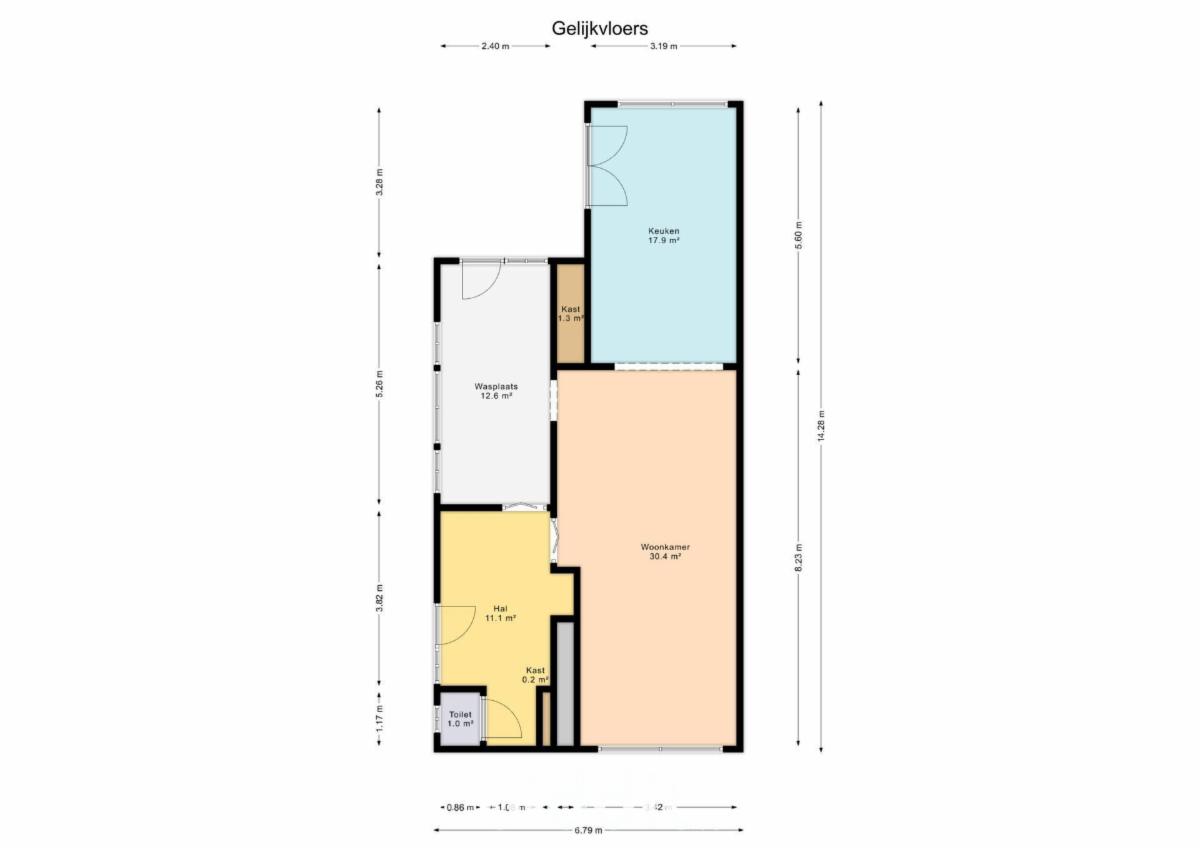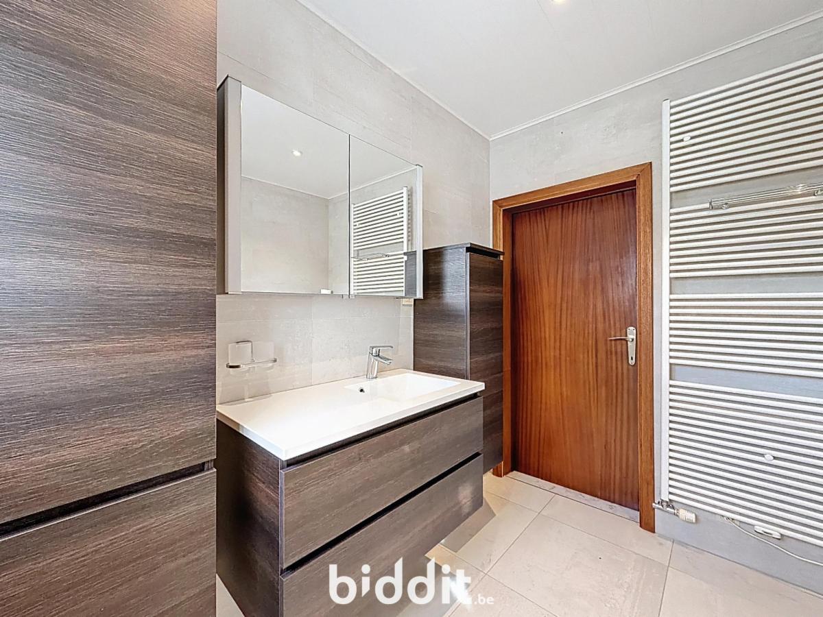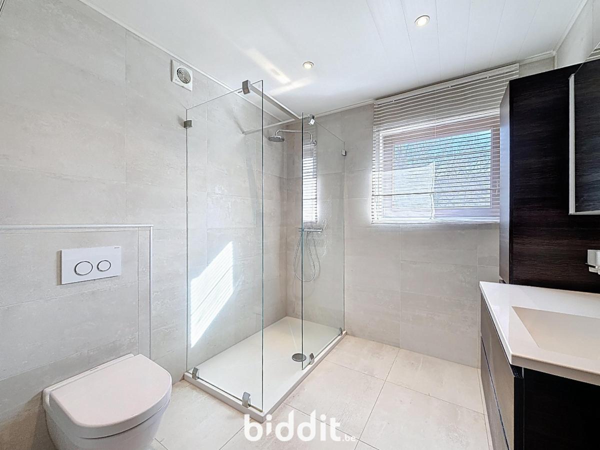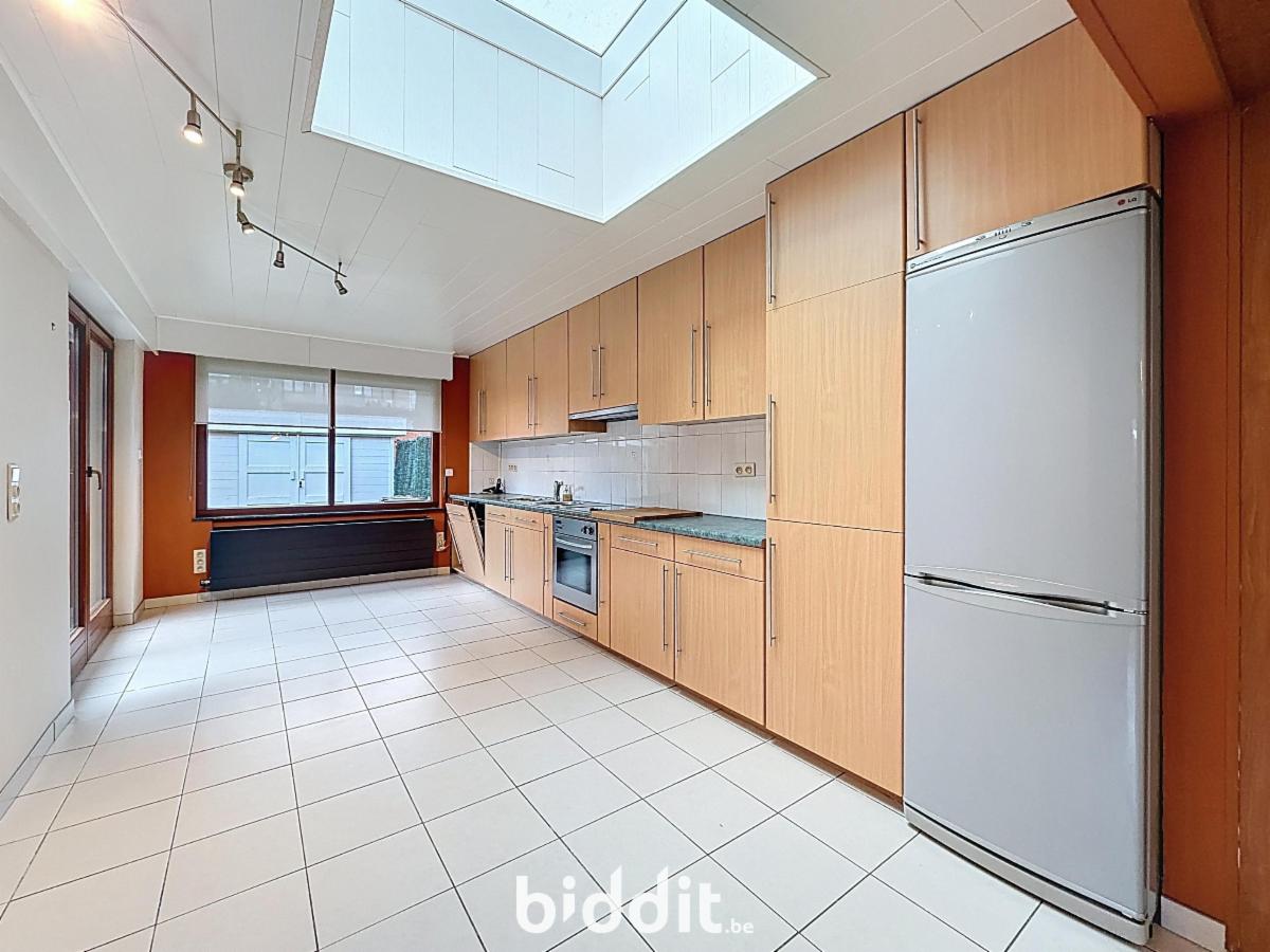 Gelijkvloers: woonkamer, gerenoveerde keuken, afzonderlijke ruime bijkeuken/wasplaats, inkomhal en afzonderlijke wc;